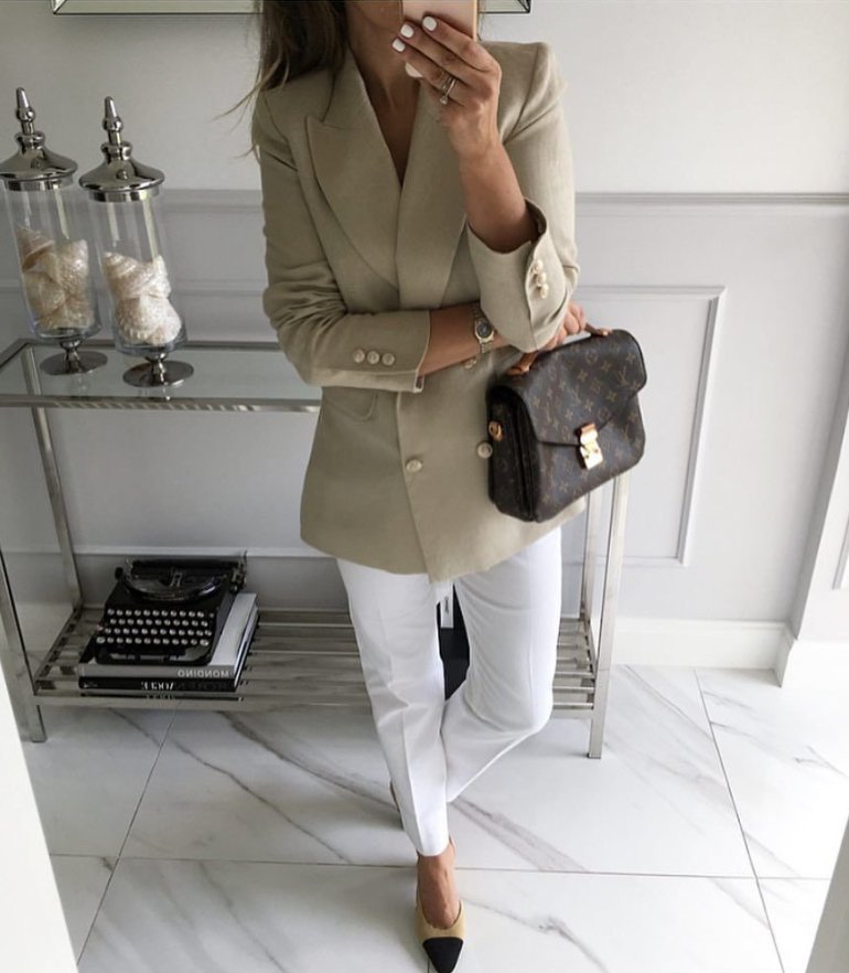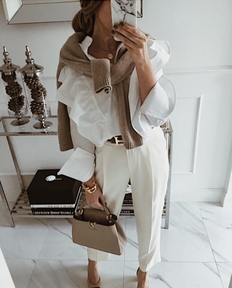 Образ с бежевыми штанами.