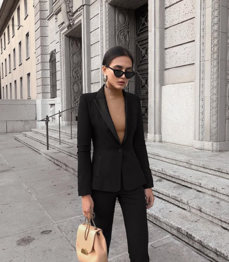 Брючный костюмчик с водолазкой.