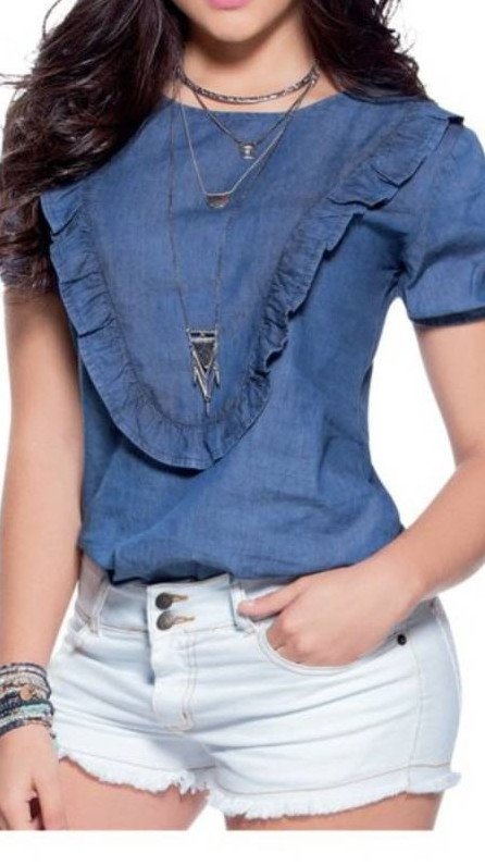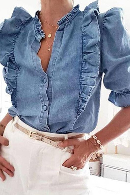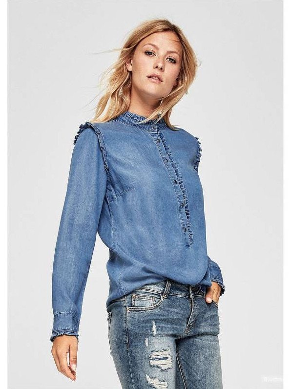 Джинсовая рубаха с воланами.