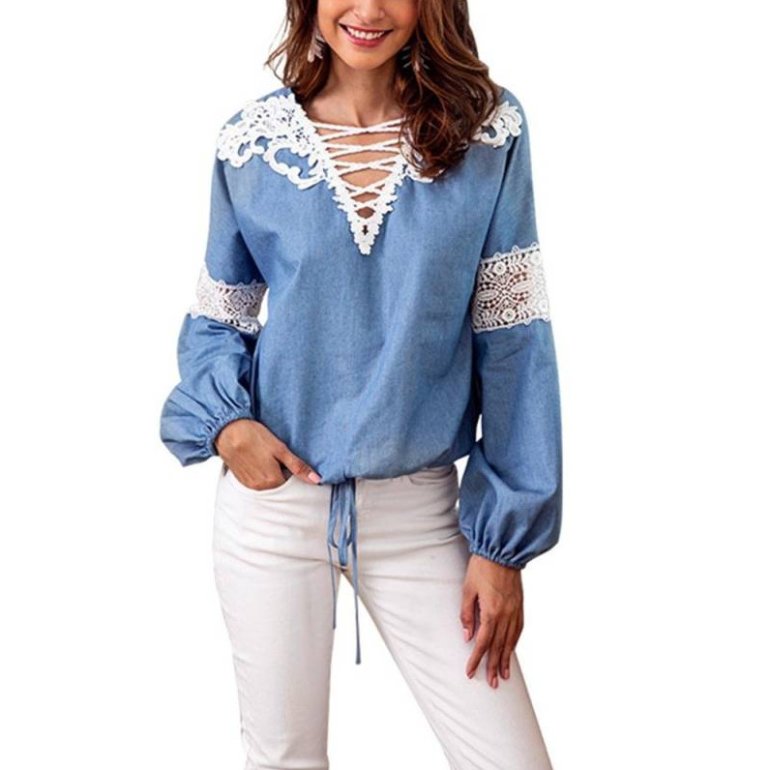 Джинсовая рубаха с кружевом.