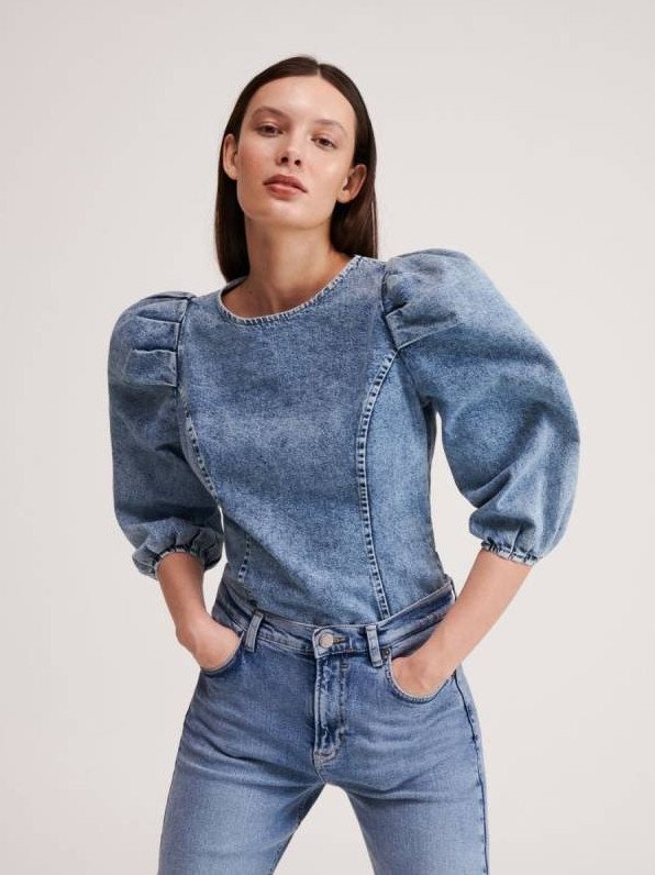 Блузка с джинсовыми рукавами.