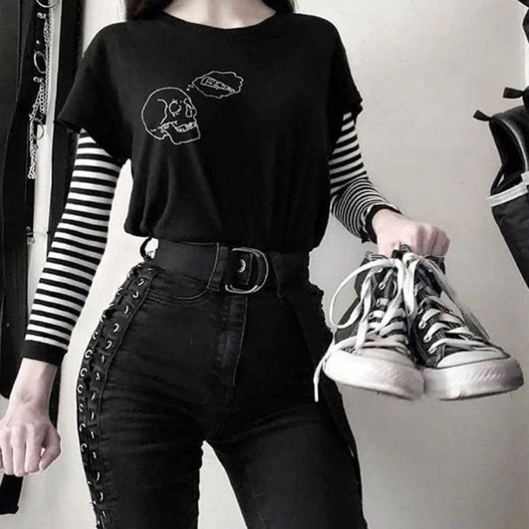 Бело темный стиль одежды.