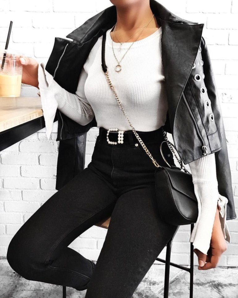 Стильный черно белоснежный образ.