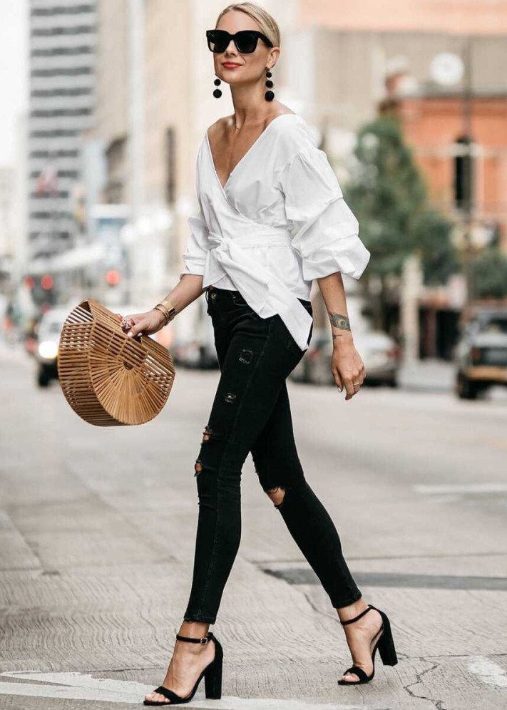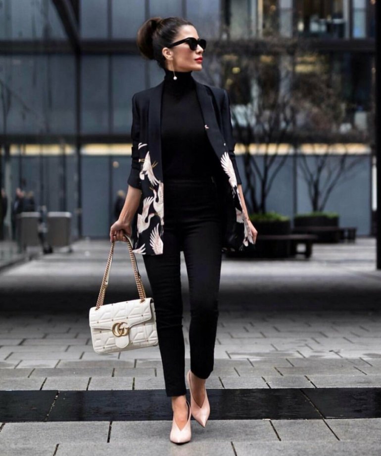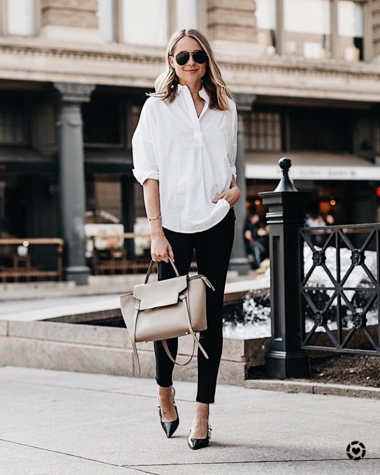 Светлый образ с темной сумкой.