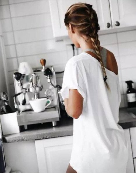 Фотосессия в белье на кухне.
