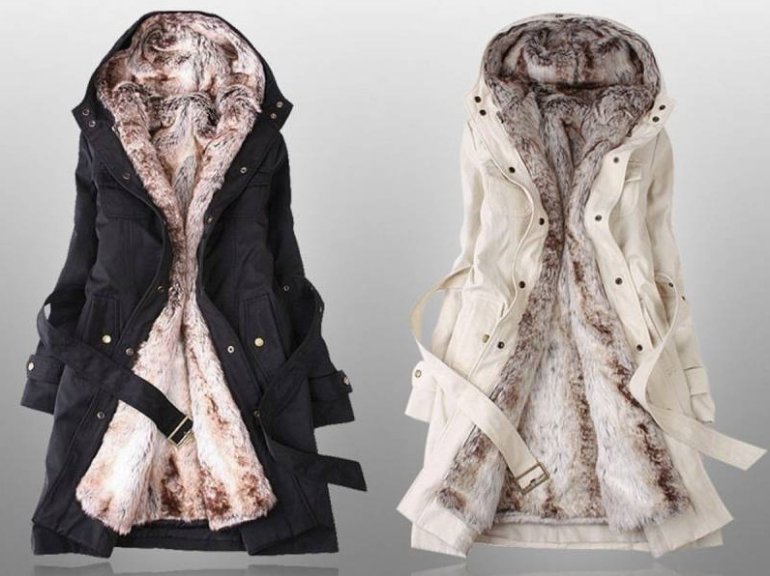 Пальто с меховой подкладкой.