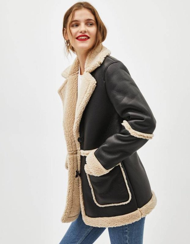 Shearling Coat Bershka.