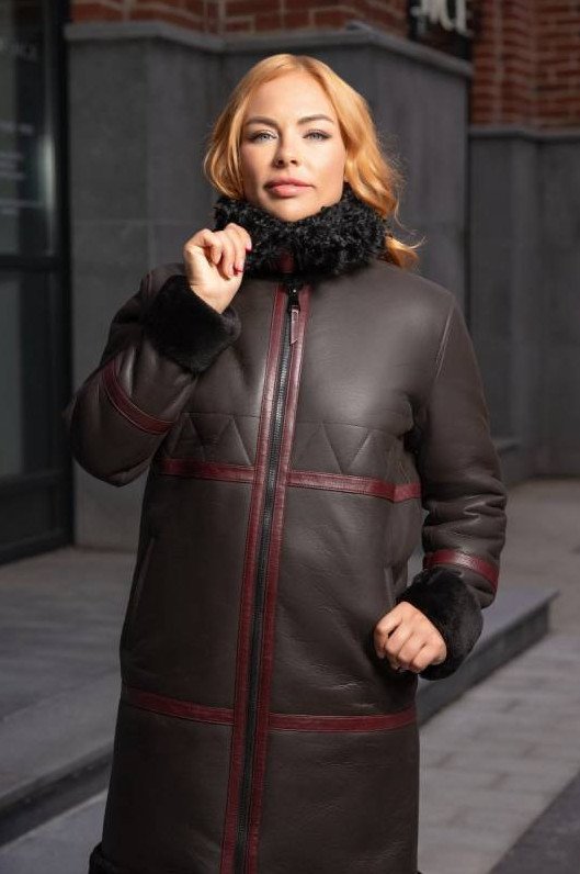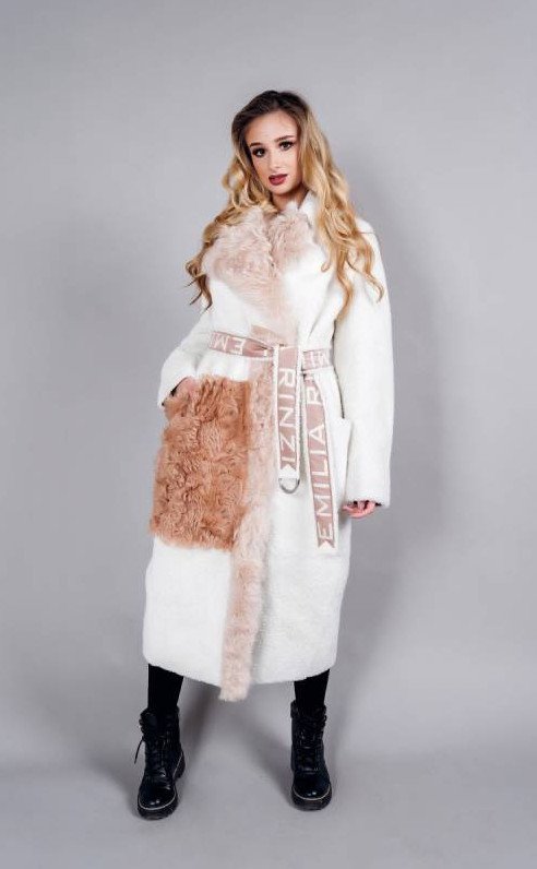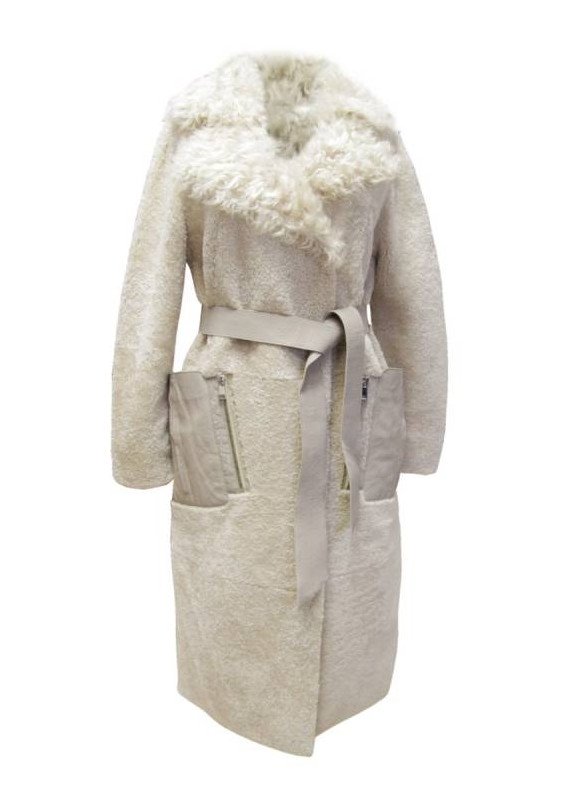 Пальто из овчины с поясом sk-492z.
