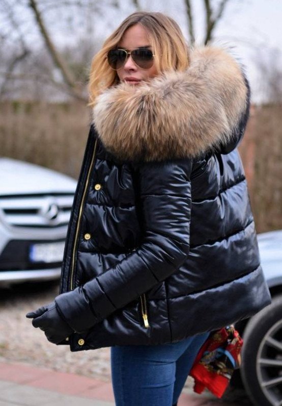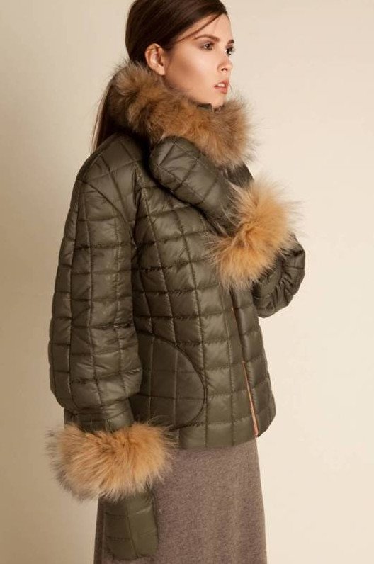 Дамские пуховики недлинные с мехом.