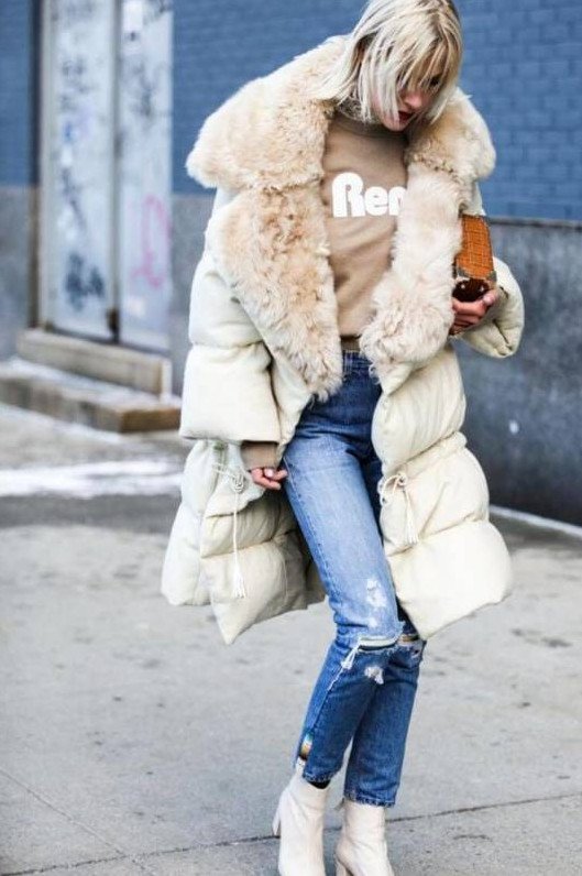 Элегантный зимний образ с пуховиком.