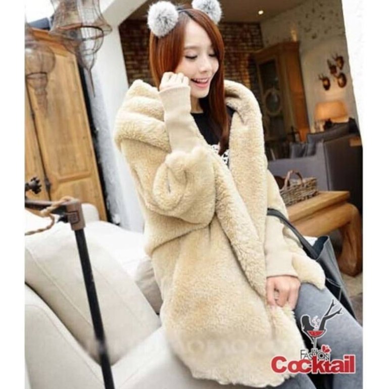 Пушистое пальто из искусственного меха.