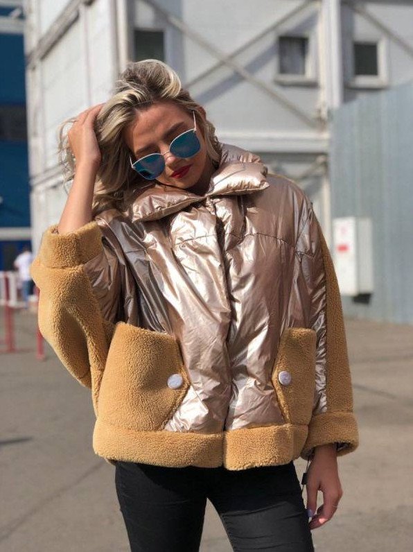 Блестящий пуховик дамский.