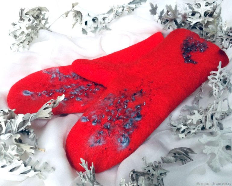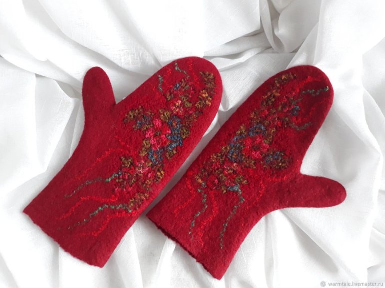 Очень красные валяные рукавицы.