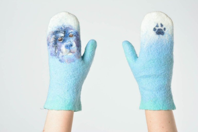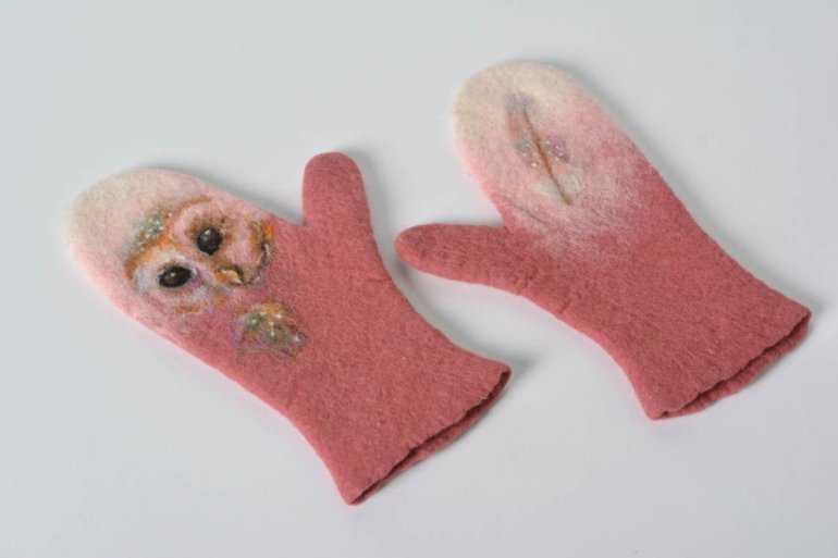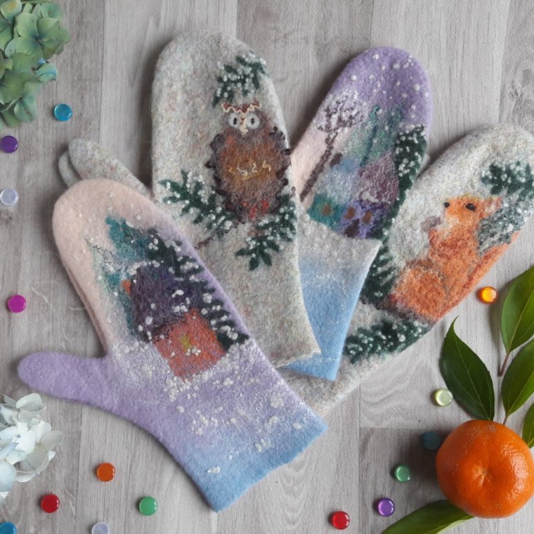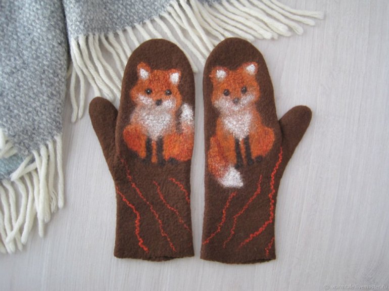 Валяные варежки с животными.