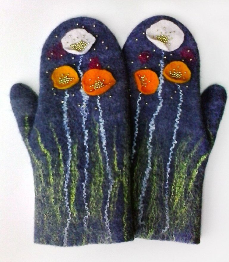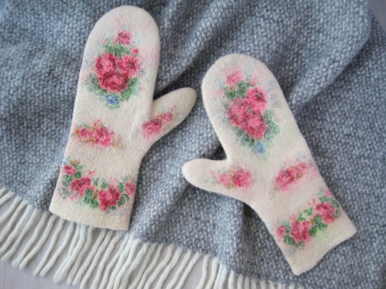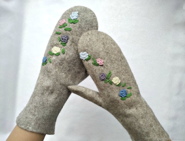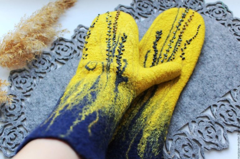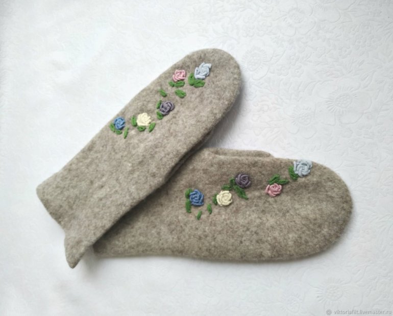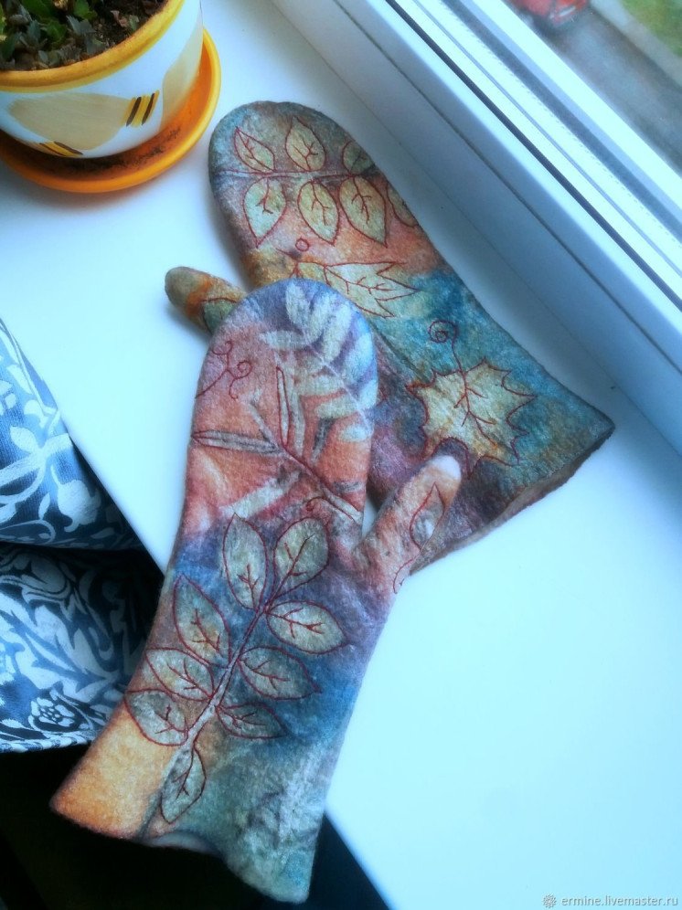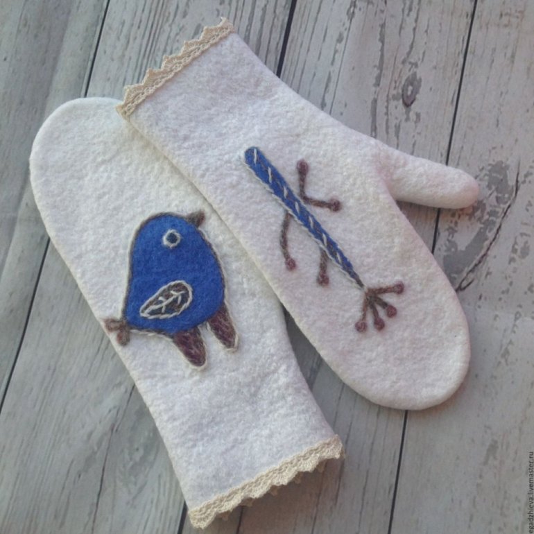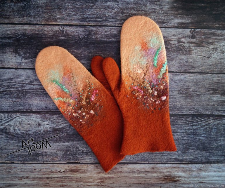 Варежки из шерсти валяние.