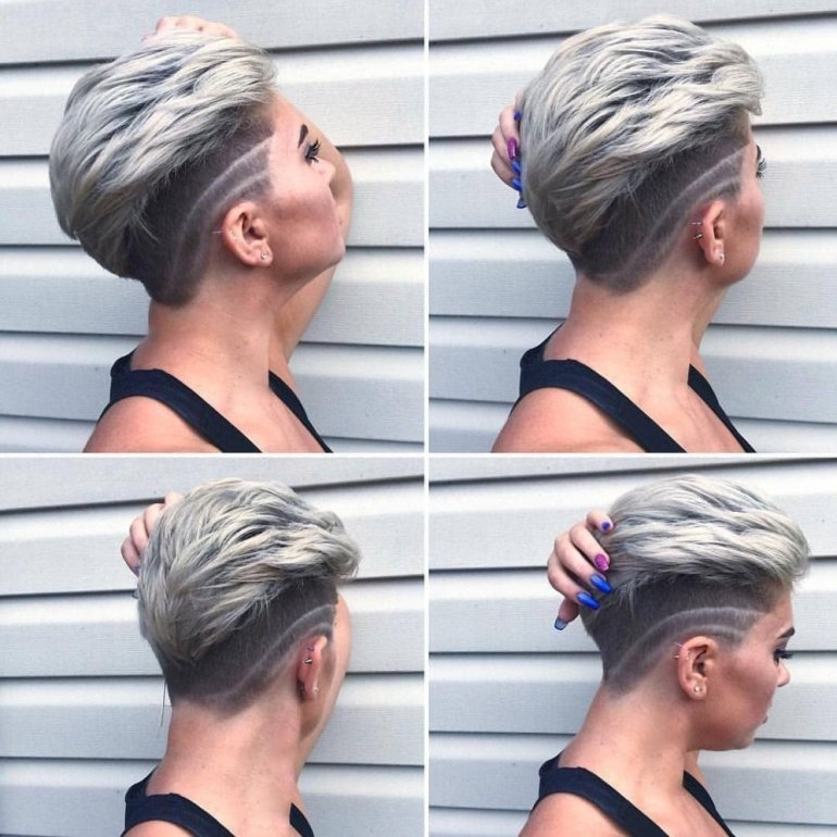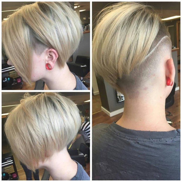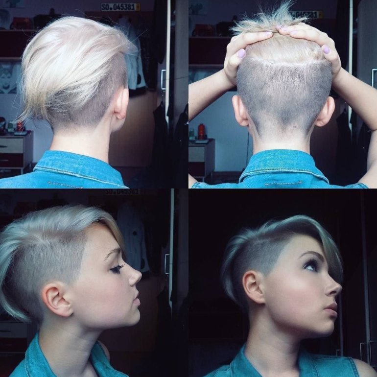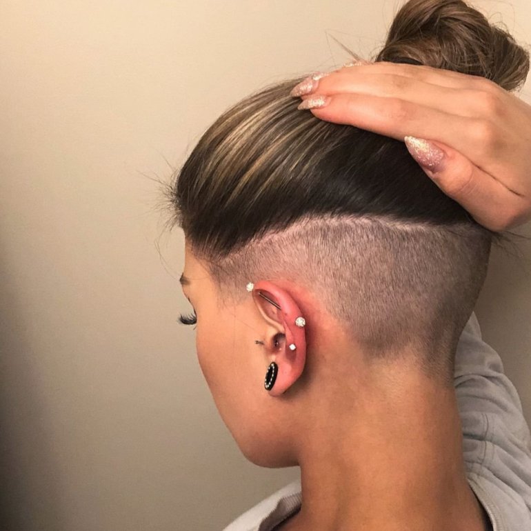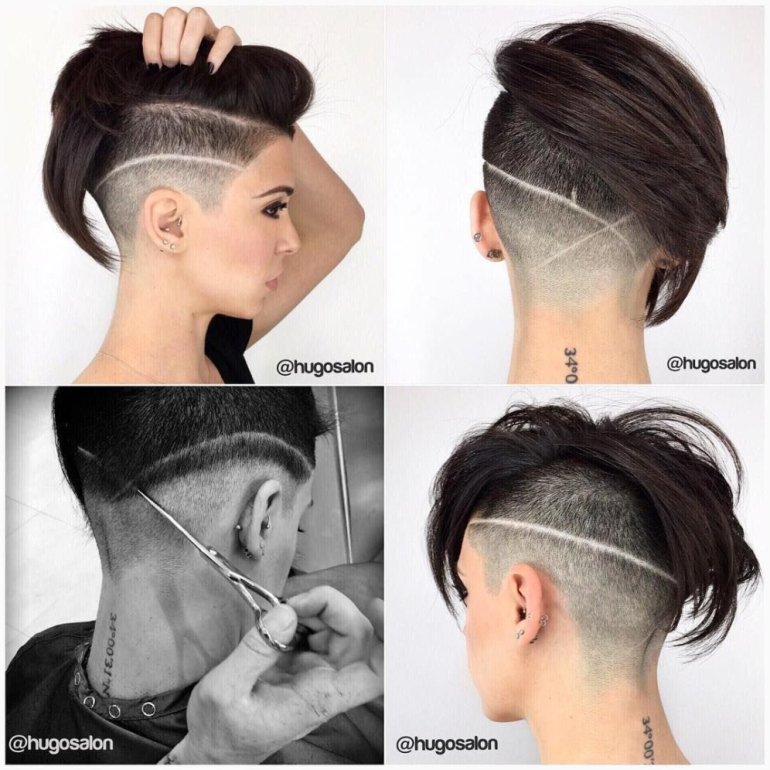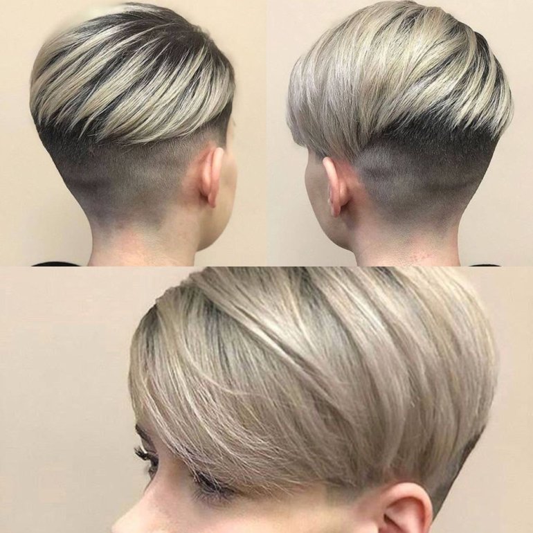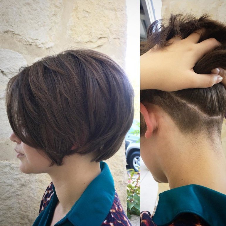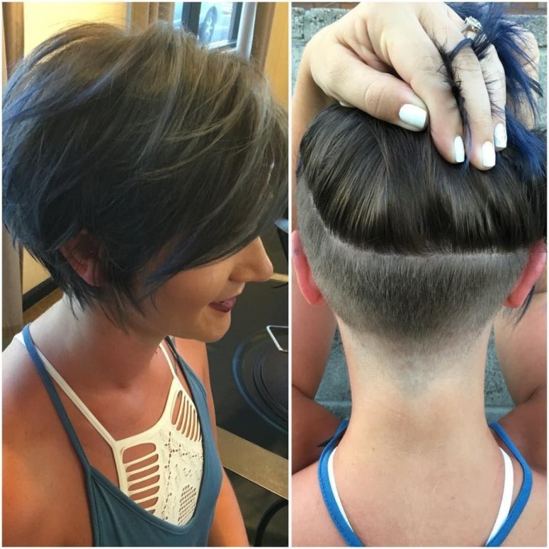 Недлинные стрижки с выбритыми висками и затылком для девчонок.