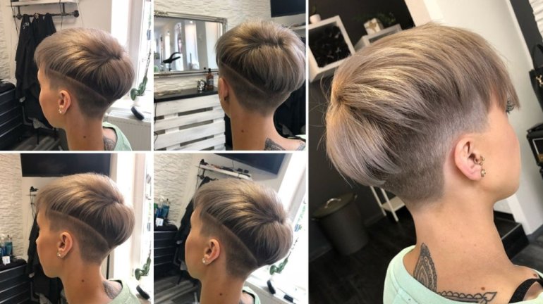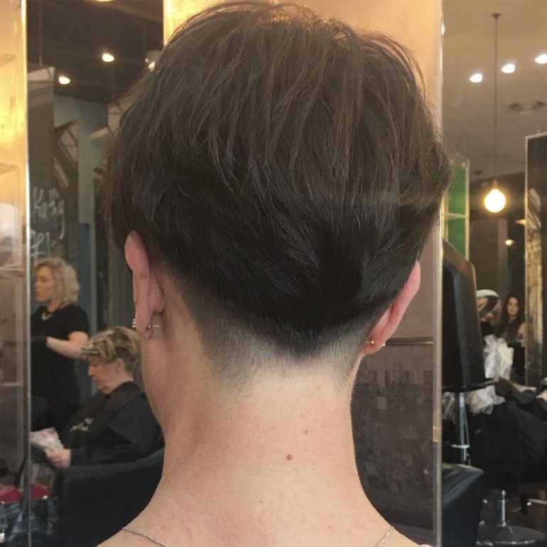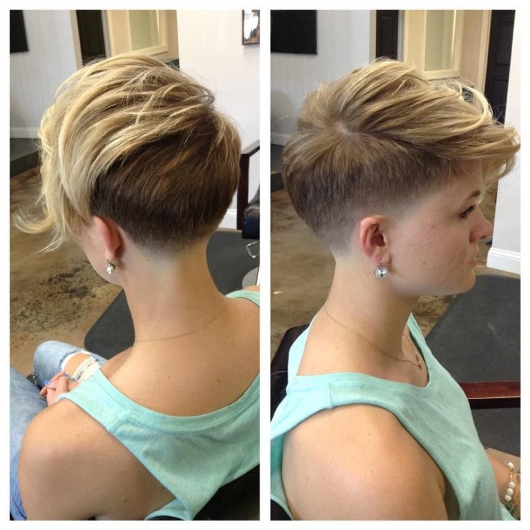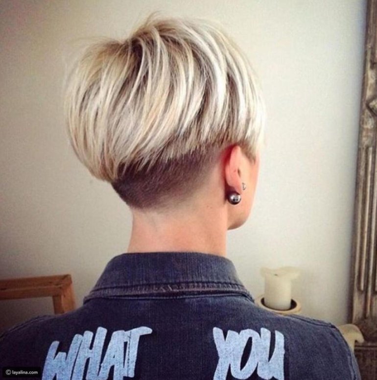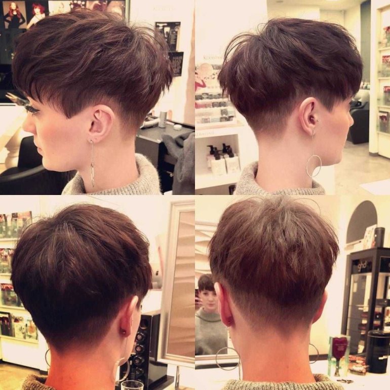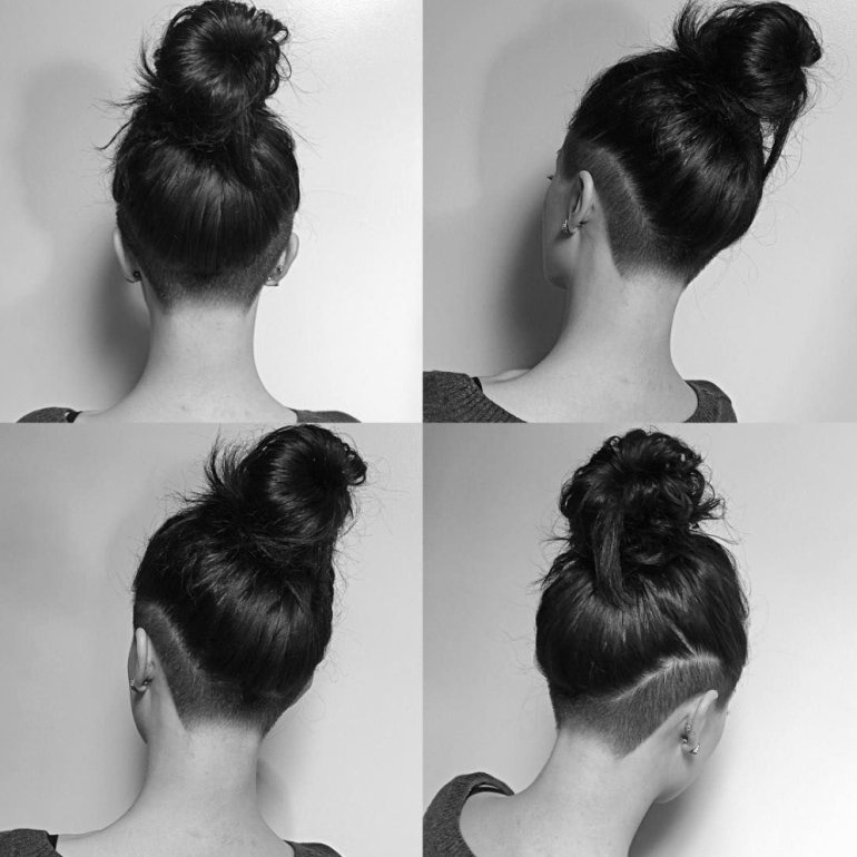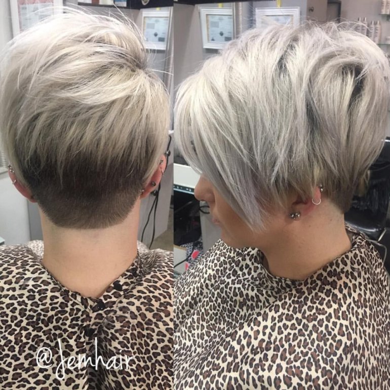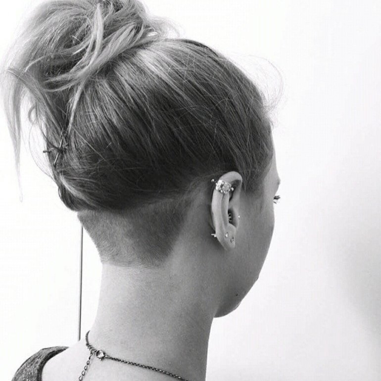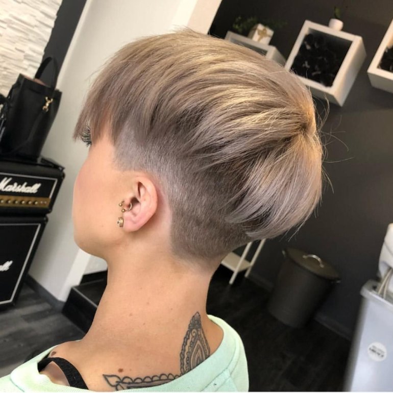 Недлинные стрижки с выбритыми висками и затылком для девчонок.