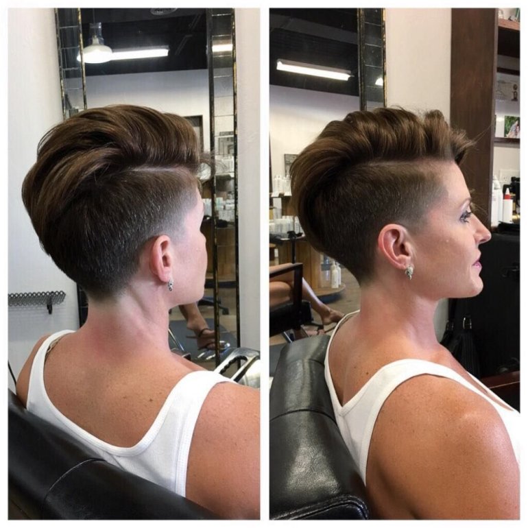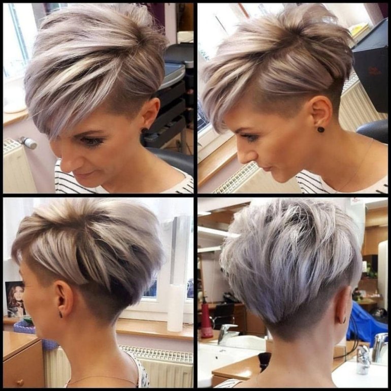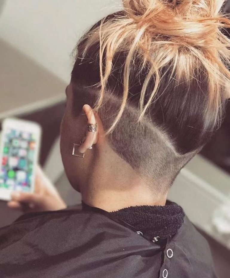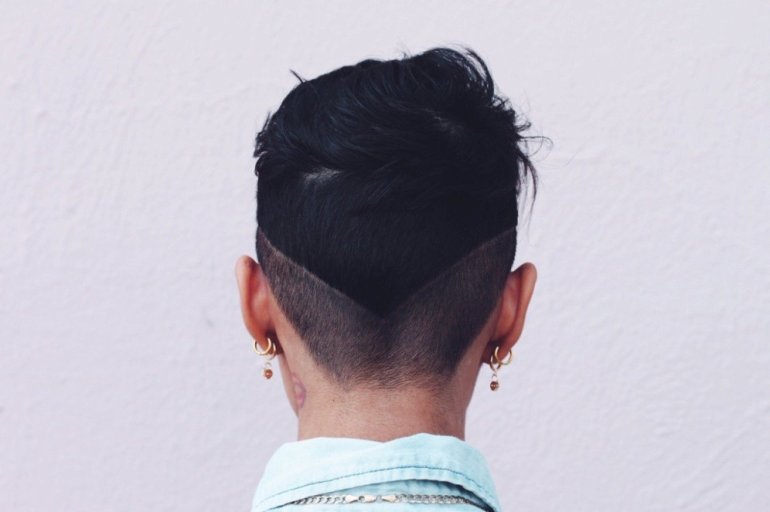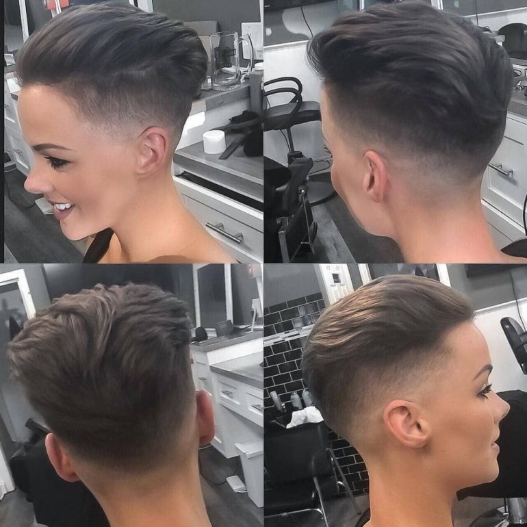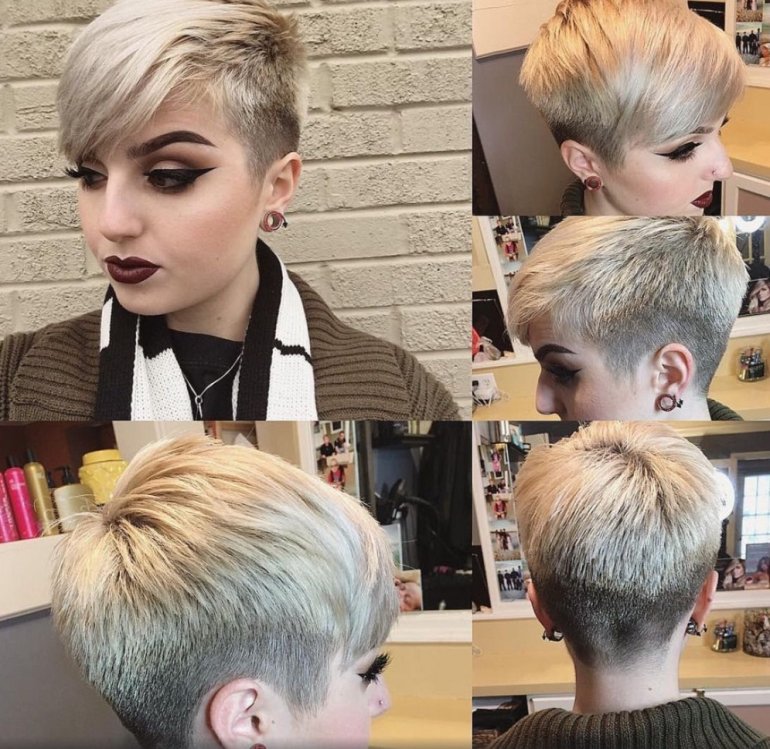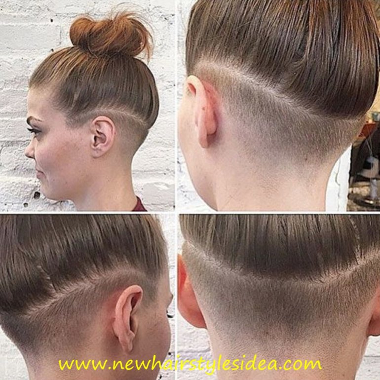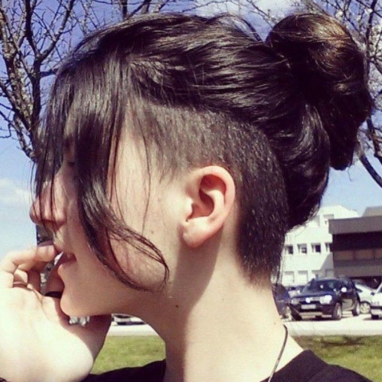 Недлинные стрижки с выбритыми висками и затылком для девчонок.