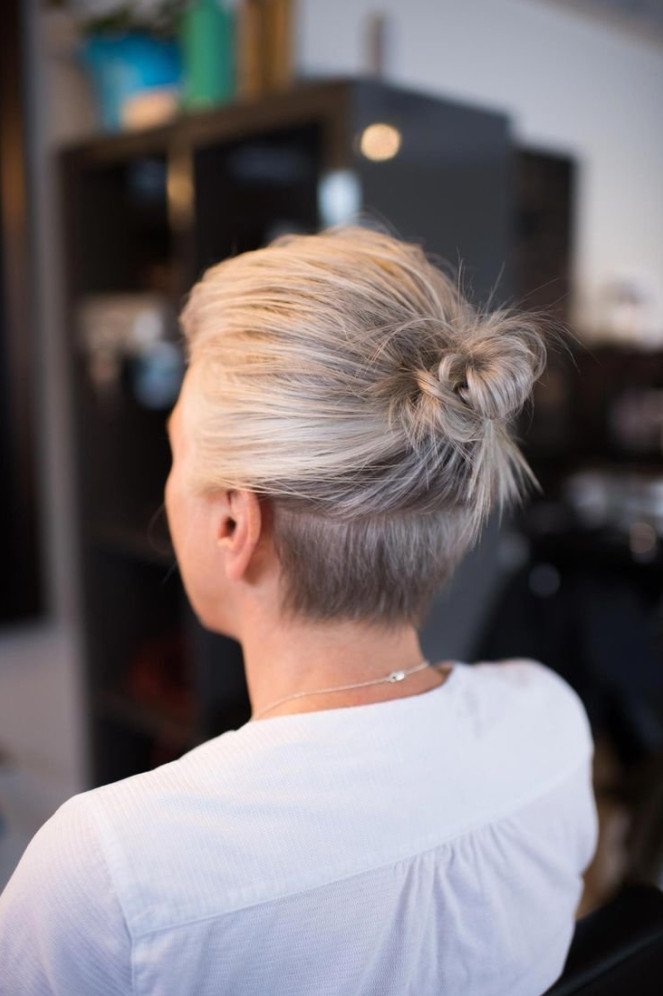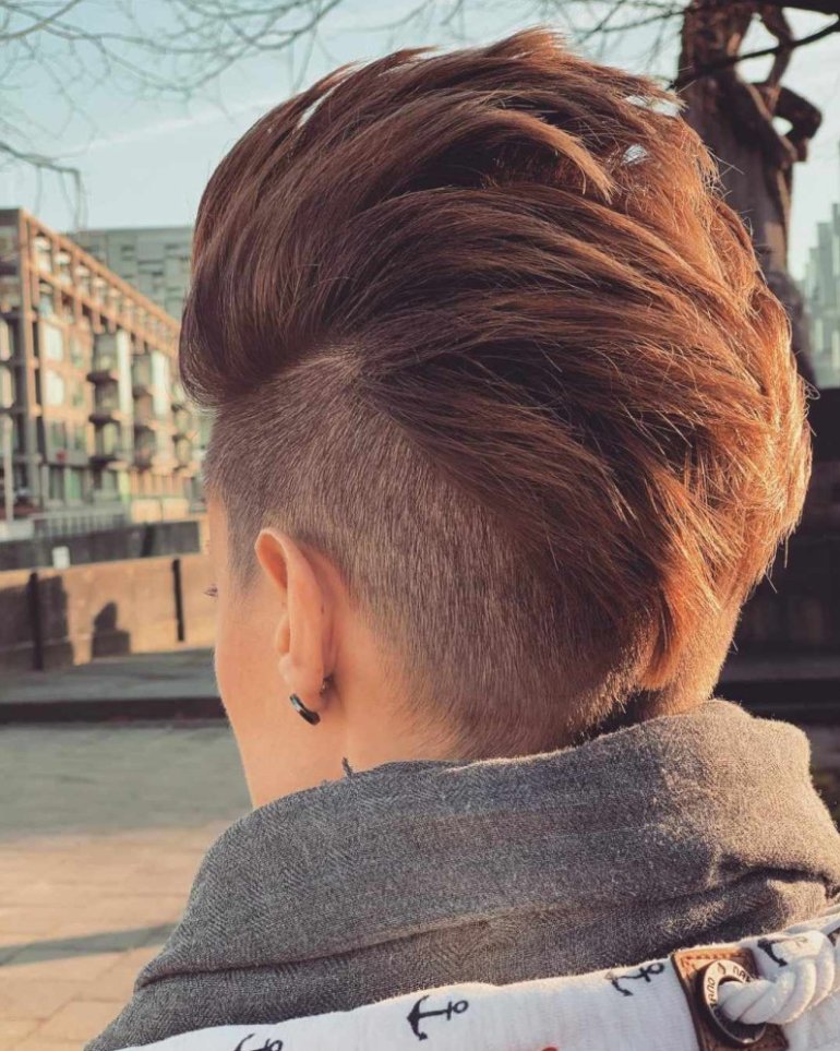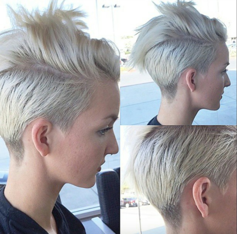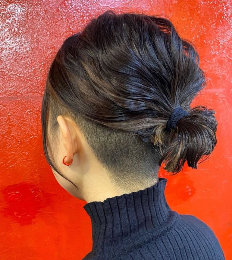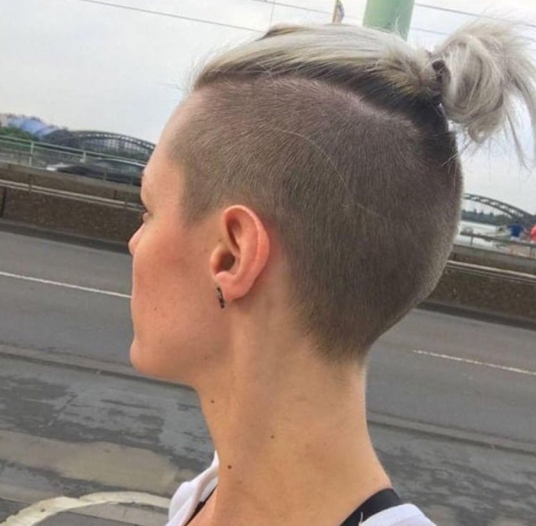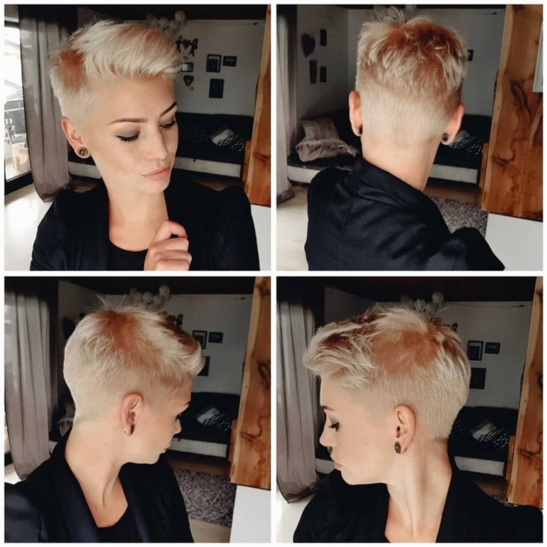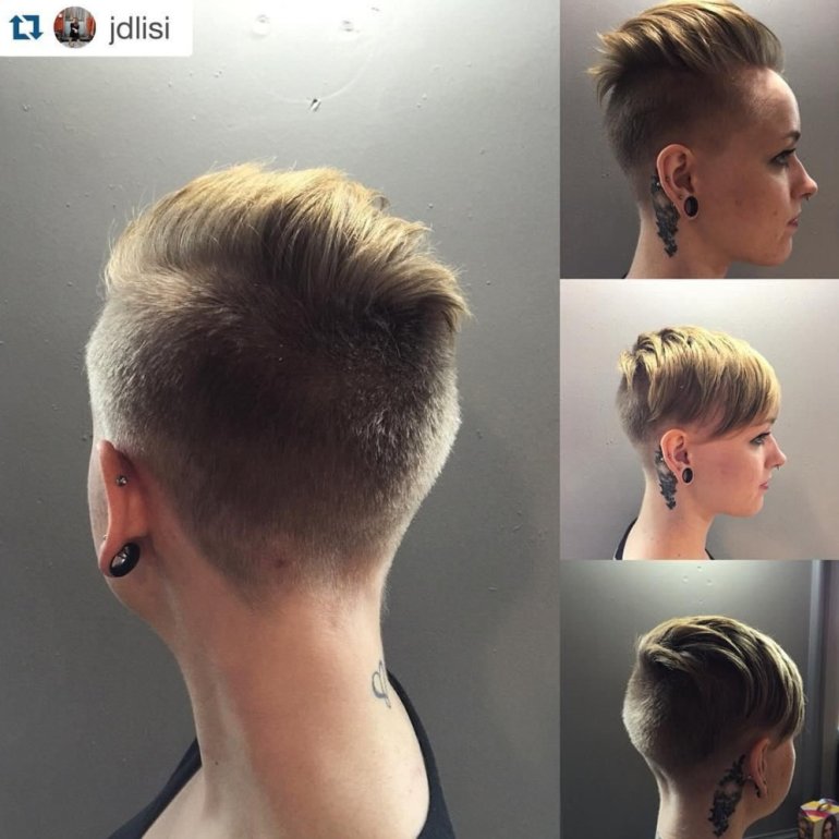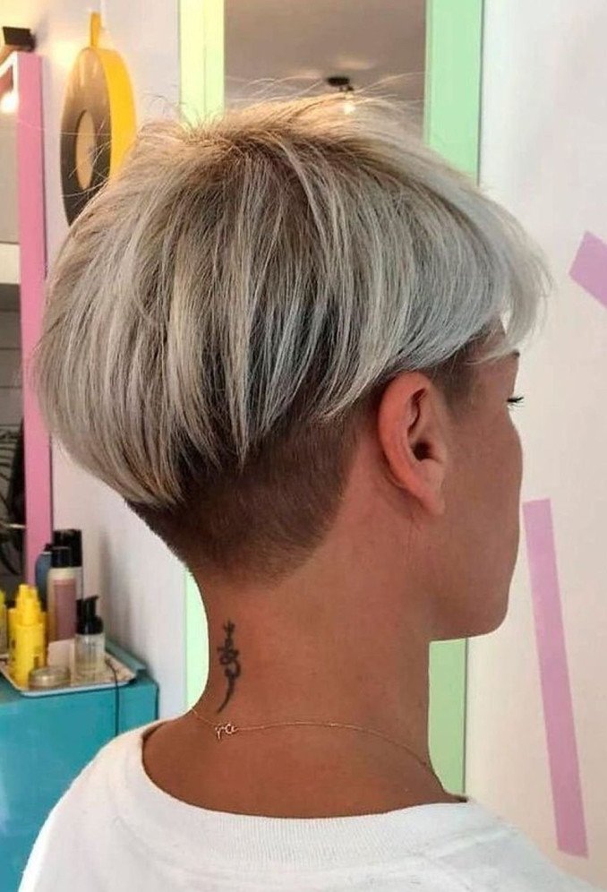 Недлинные стрижки с выбритыми висками и затылком для девчонок.