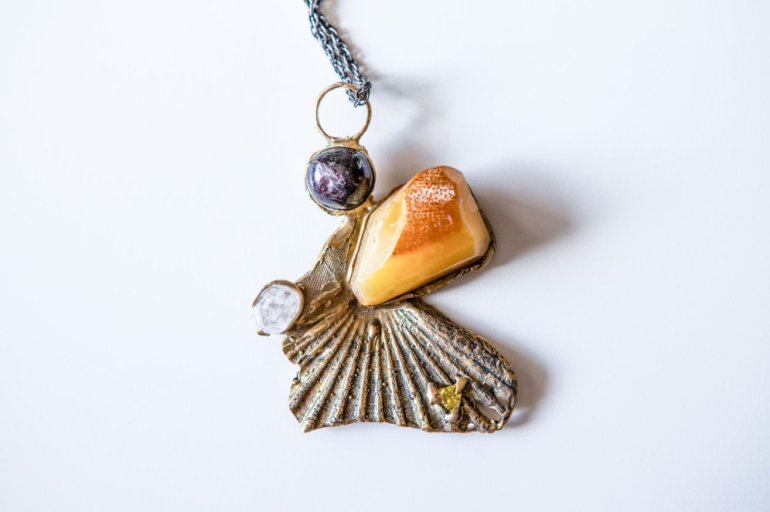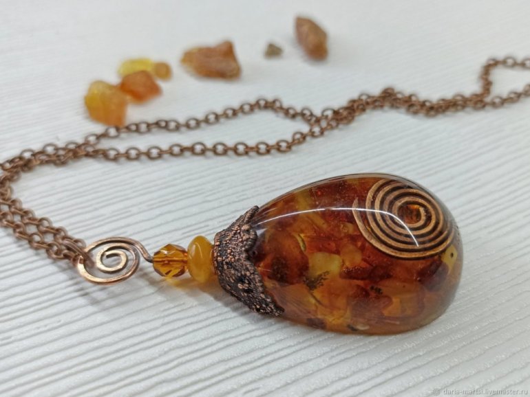 Подвеска с янтарем из сильно красного золота 03-2704-01-271-1110-46.