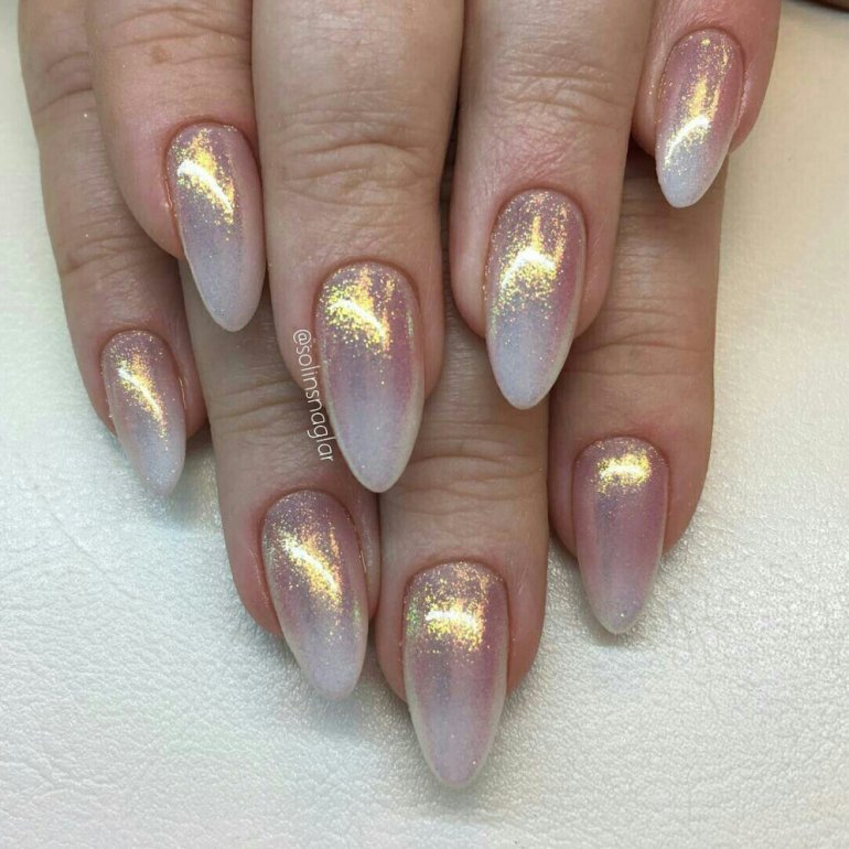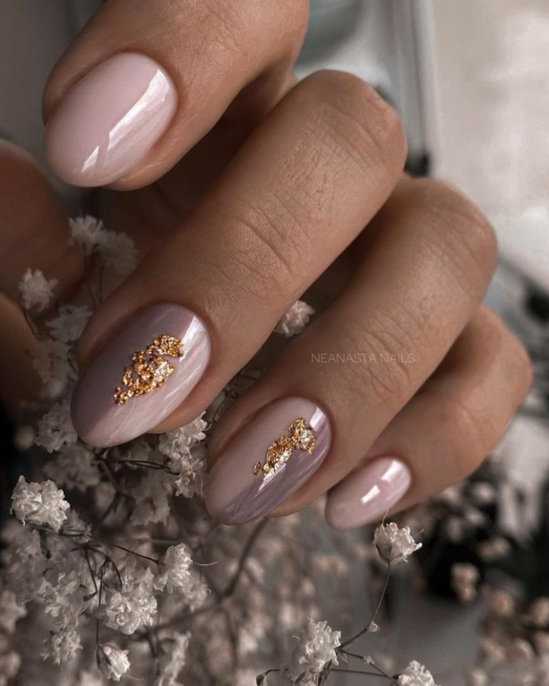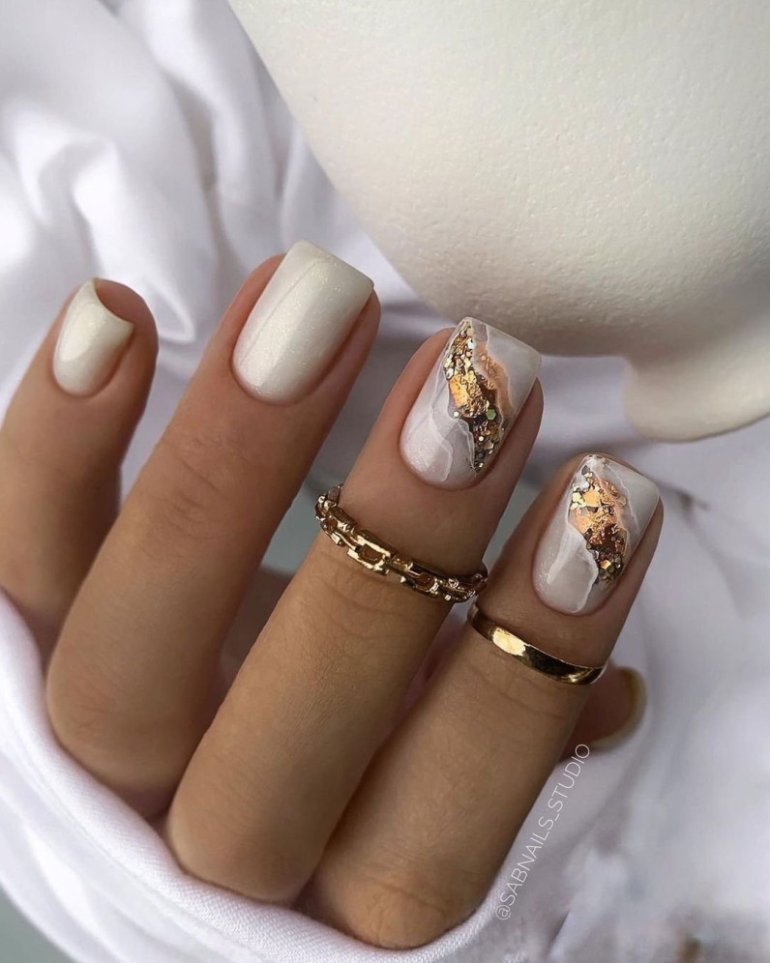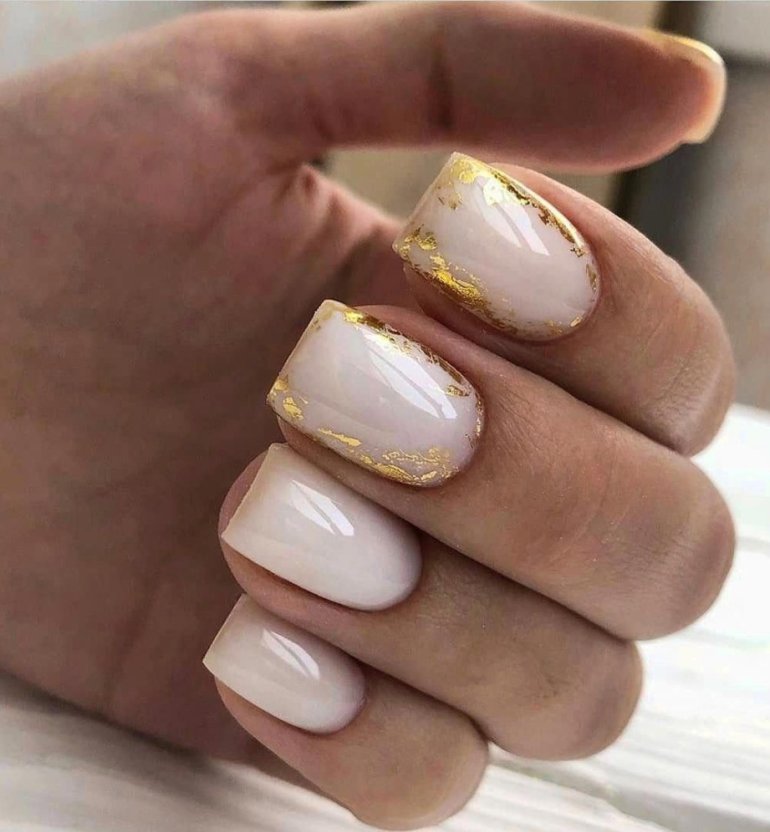 Маникюр молочный с поталью 2022.