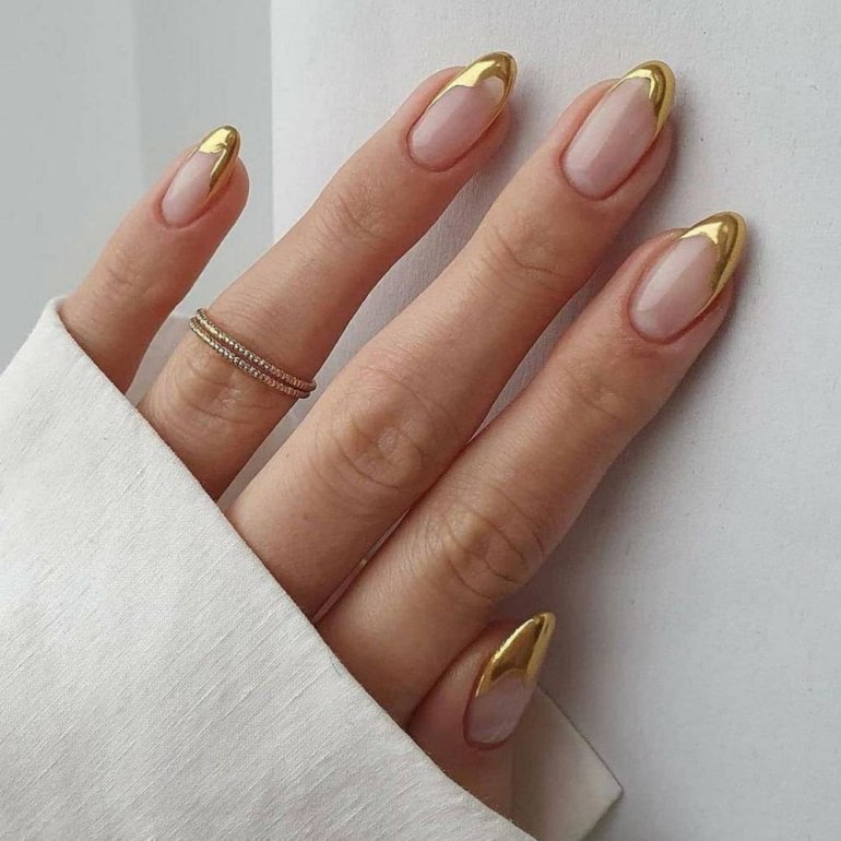 Золотой френч 2022 на миндалевидных.