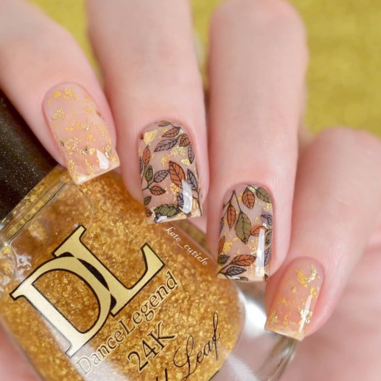 Ногти осенние с золотом.