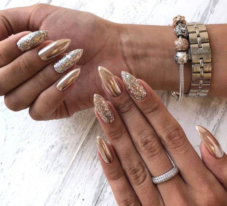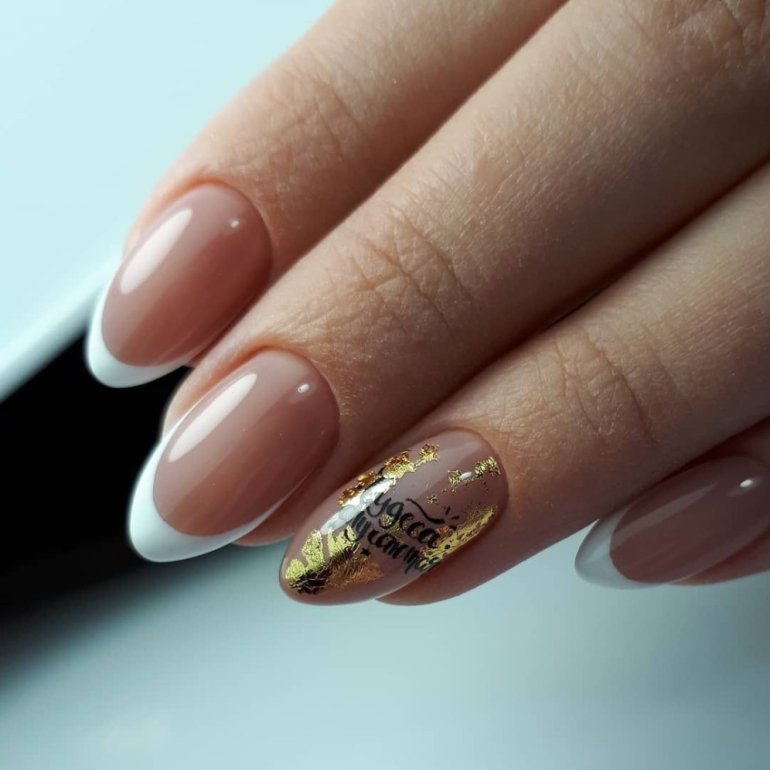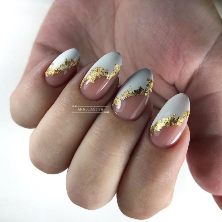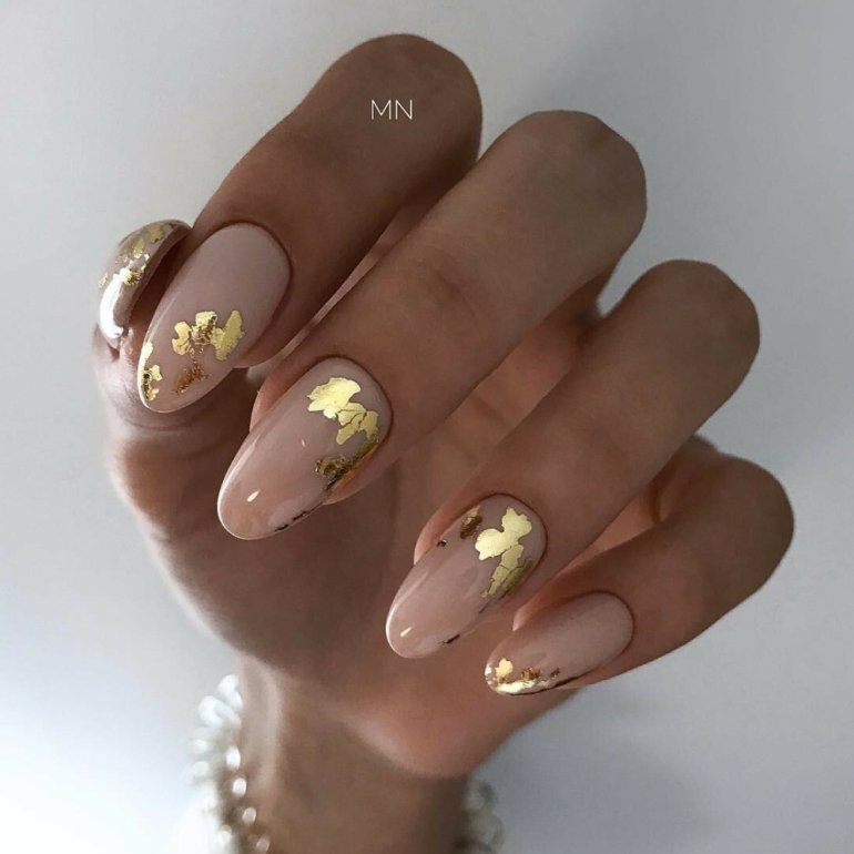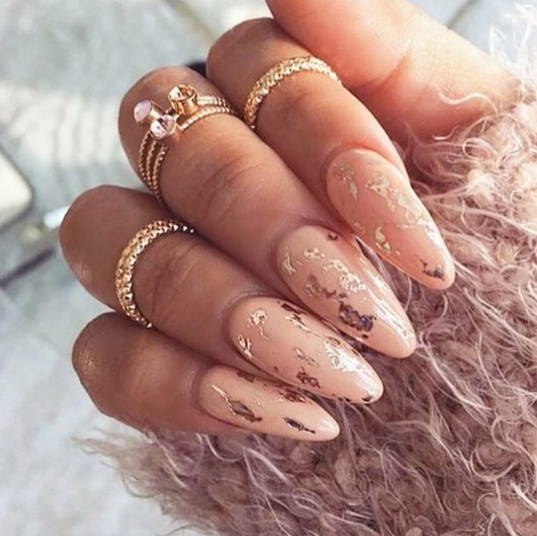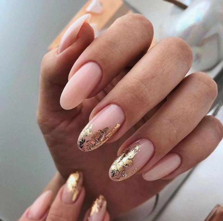 Маникюр с золотом 2022 миндаль.