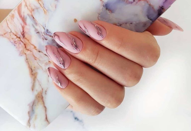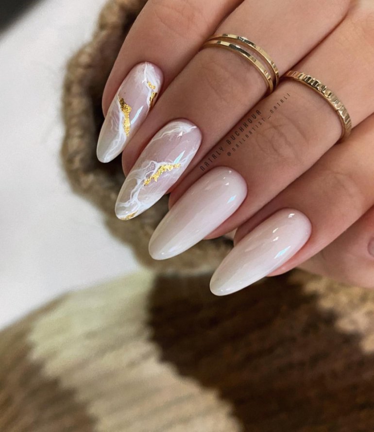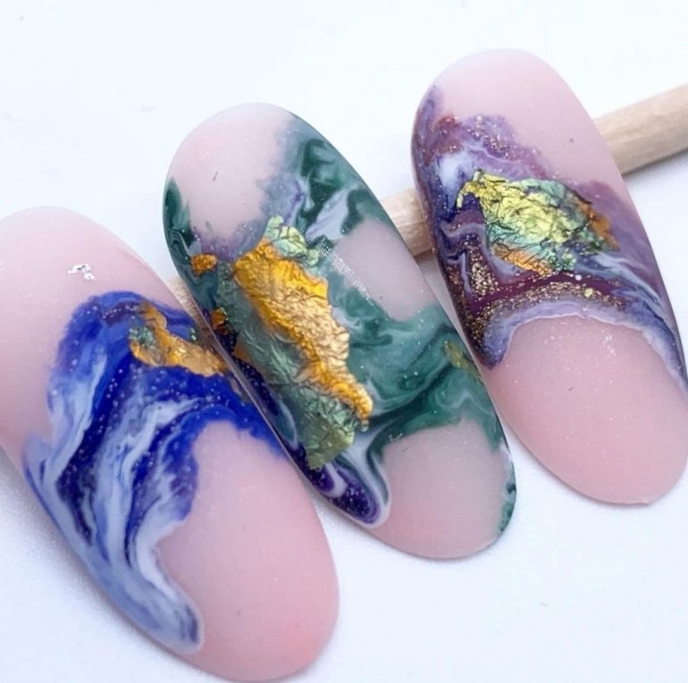 Маникюр 2022 миндаль мрамор.