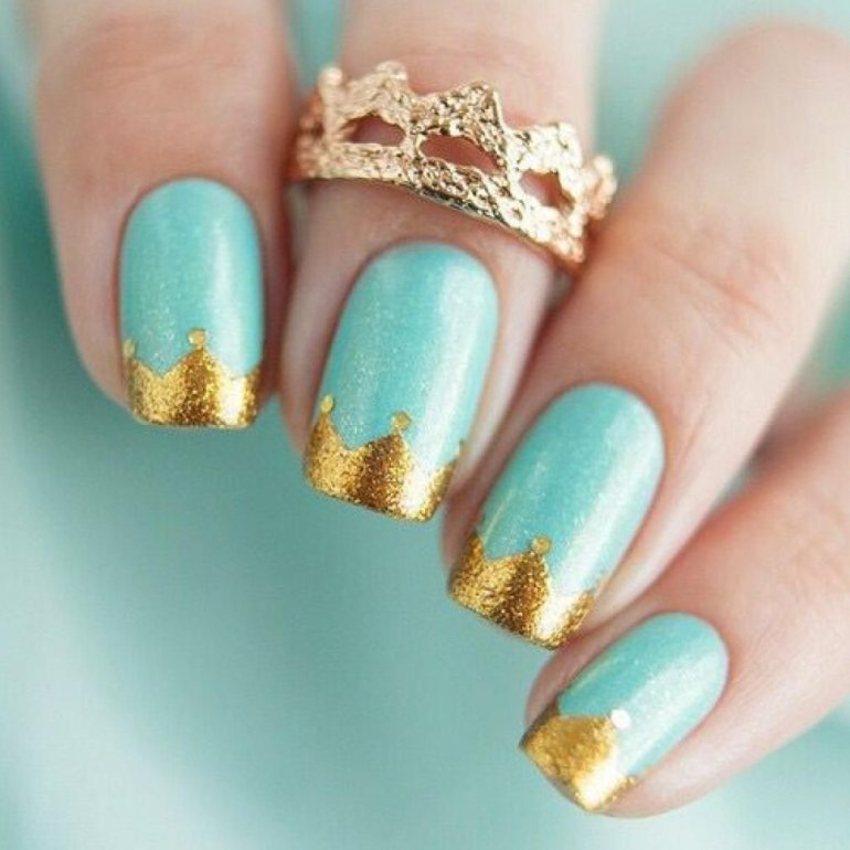 Ногти бирюза с золотом.