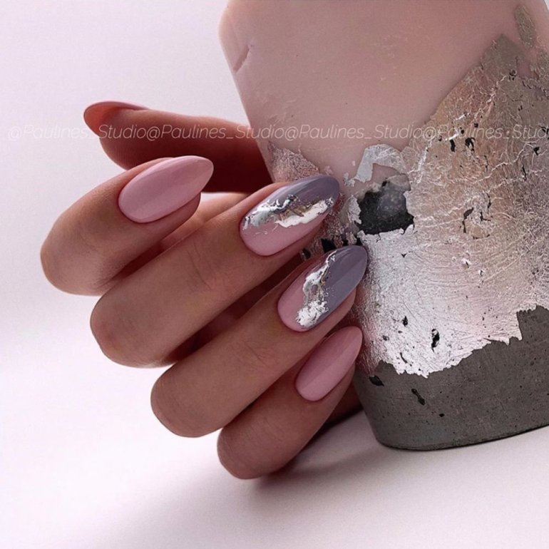 Сероватые ногти с фольгой.