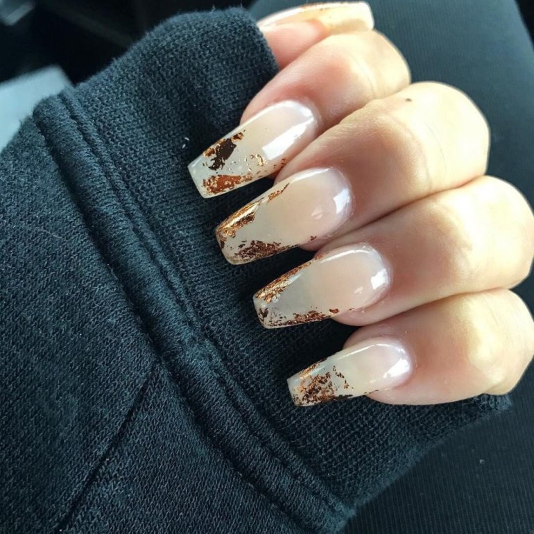 Бежевые ногти с фольгой.