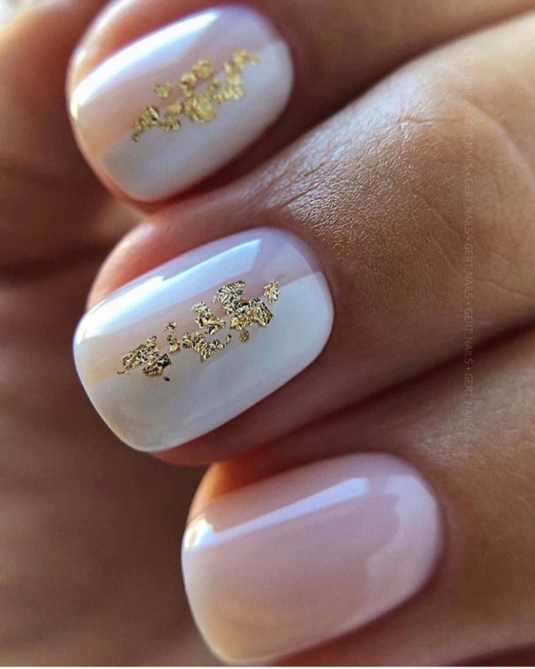 Молочный маникюр с фольгой.