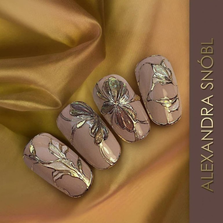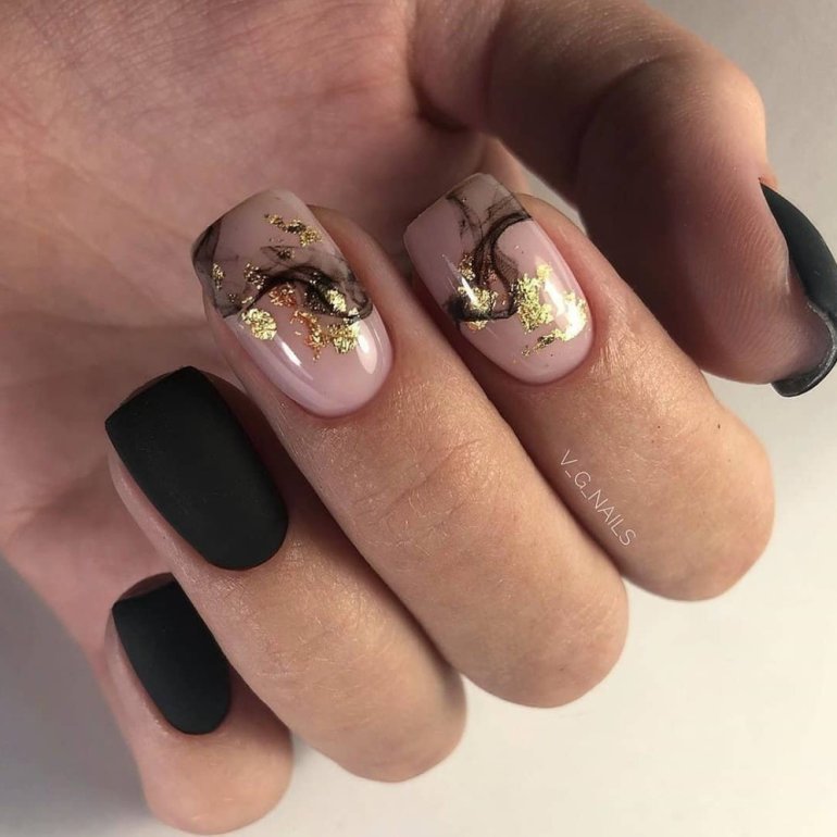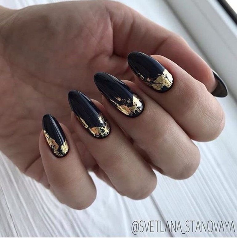 Ногти с золотом.