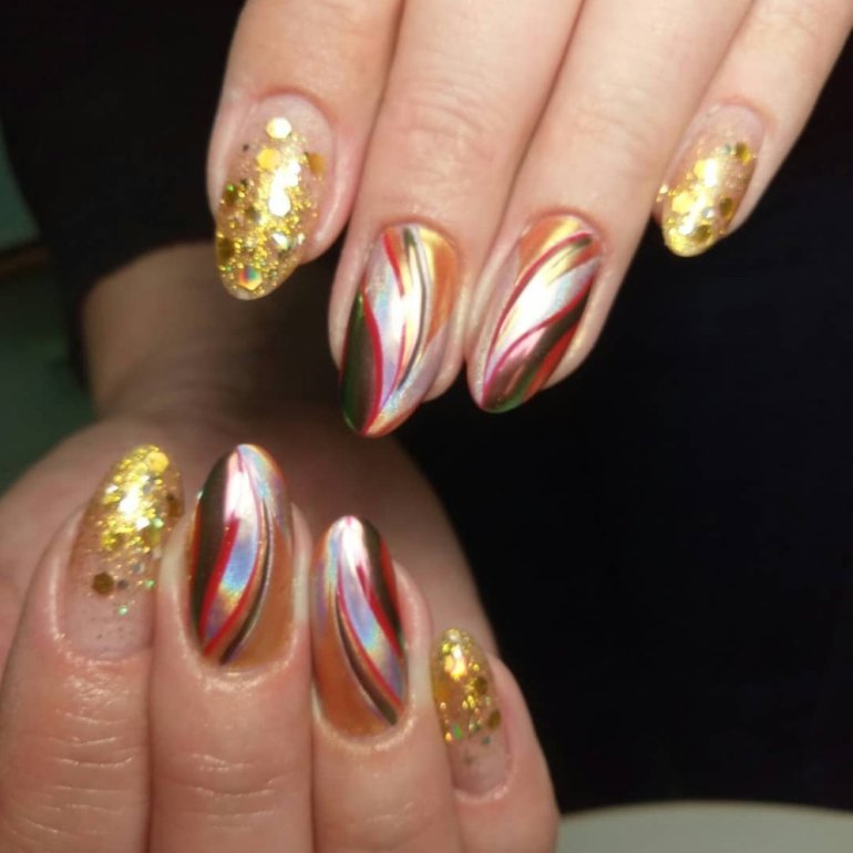 Броский маникюр с золотом.
