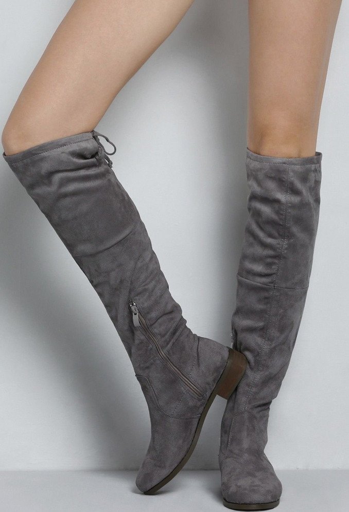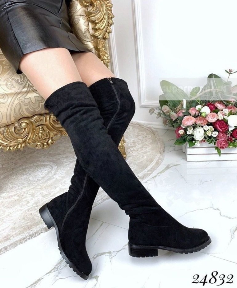 Ботфорты дамские замшевые без каблука.