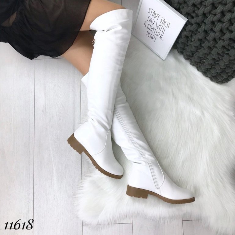 Белоснежные сапоги дамские ботфорты.