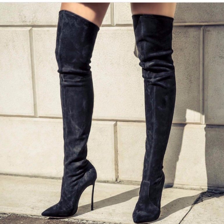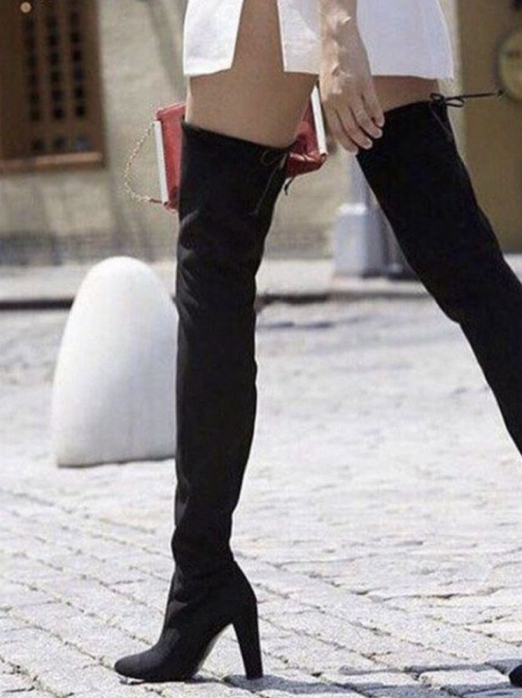 Замшевые ботфорты на шпильке.