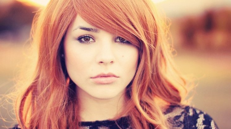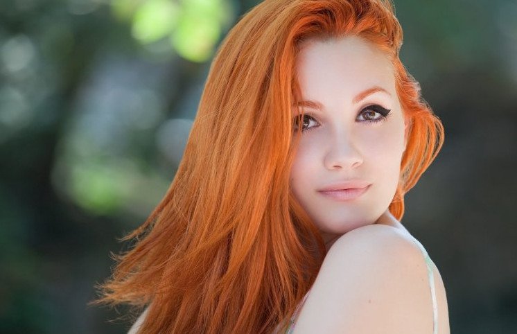 Кареглазая рыжеволосая девушка.