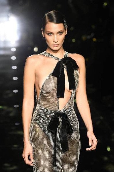 Белла Хадид прозрачное прекрасное платье.