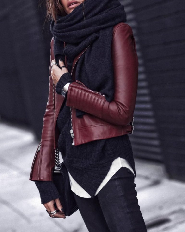 Шарф с кожаной курткой.