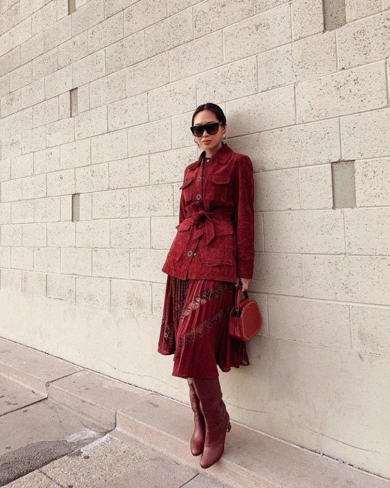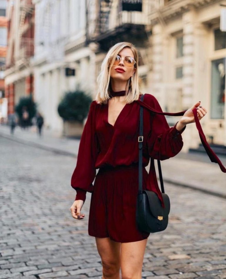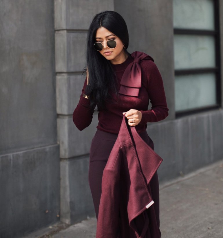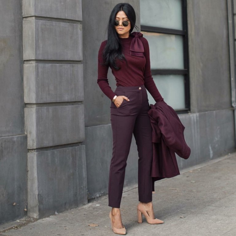 Образ в бордовом цвете.