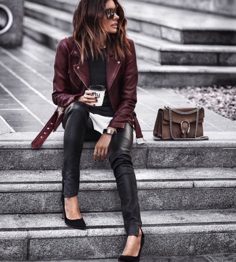 Образ с красной кожаной курткой.