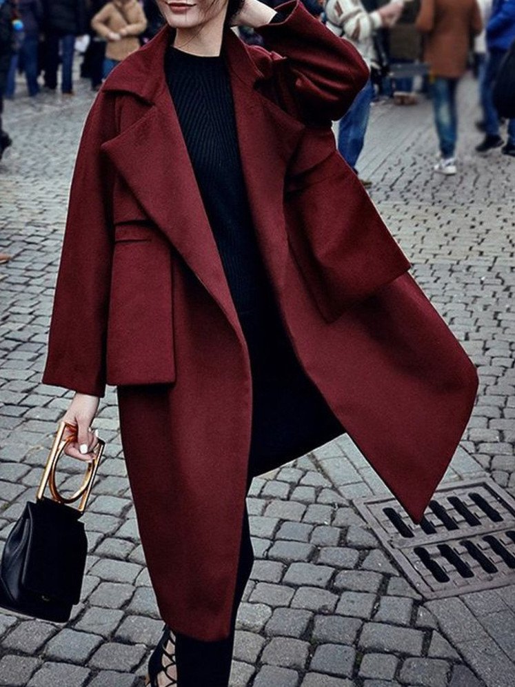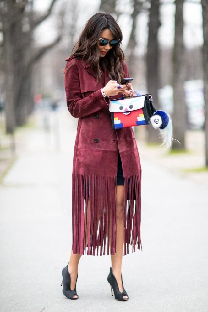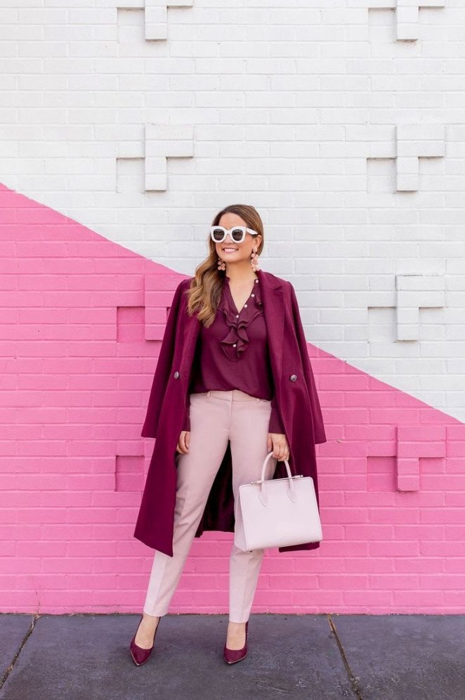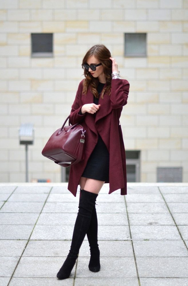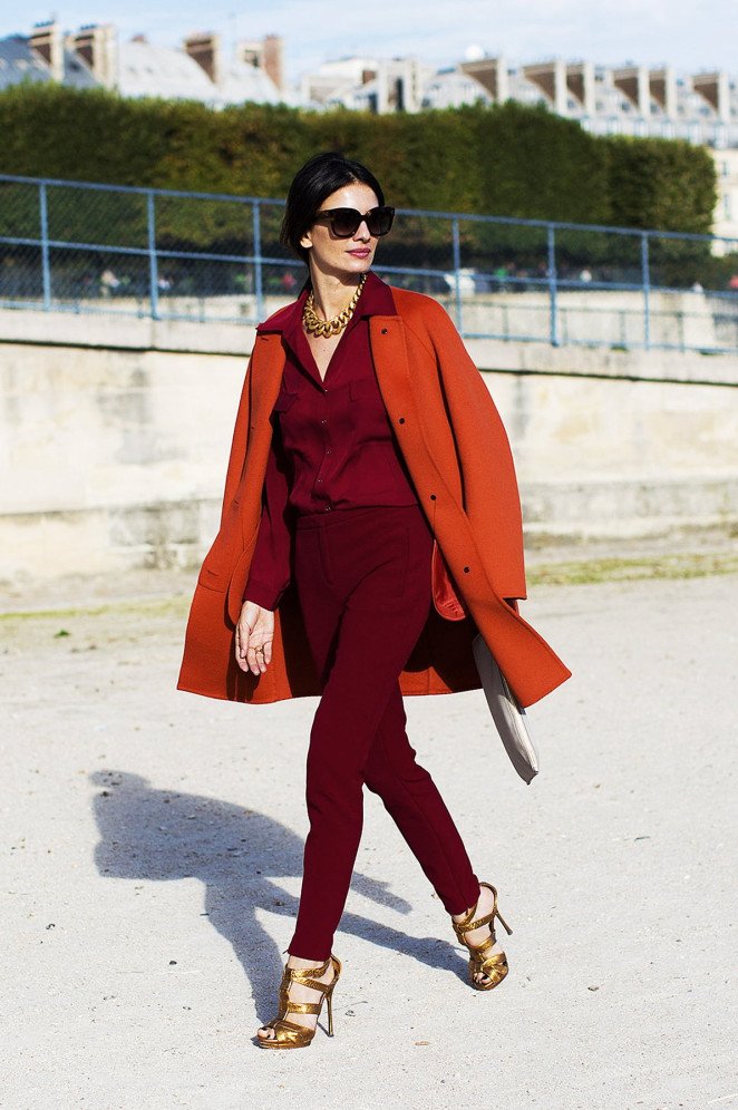 Street Style пальто цвета марсала.