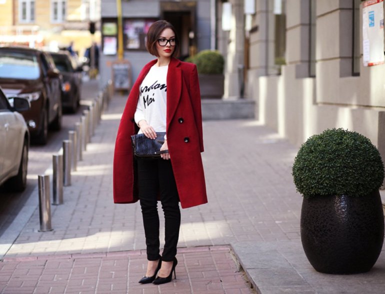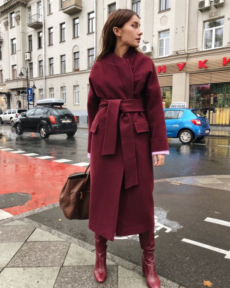 Образы с бордовым пальто.