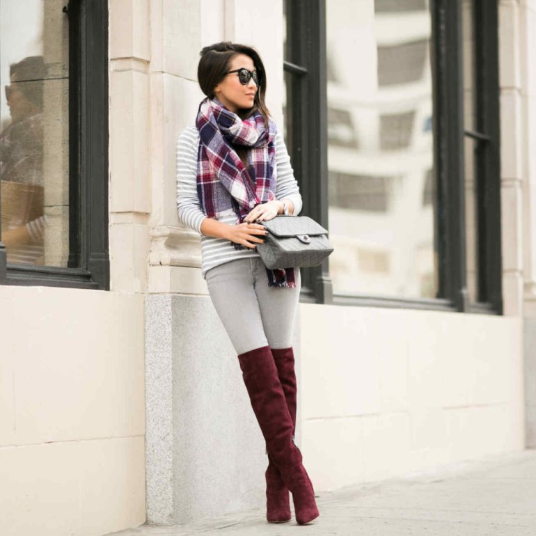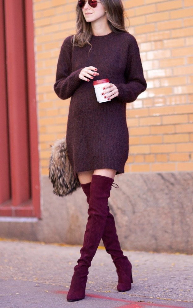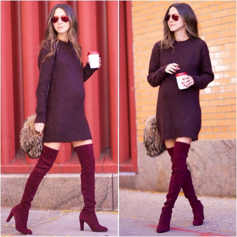 Красные сапоги с пальто.