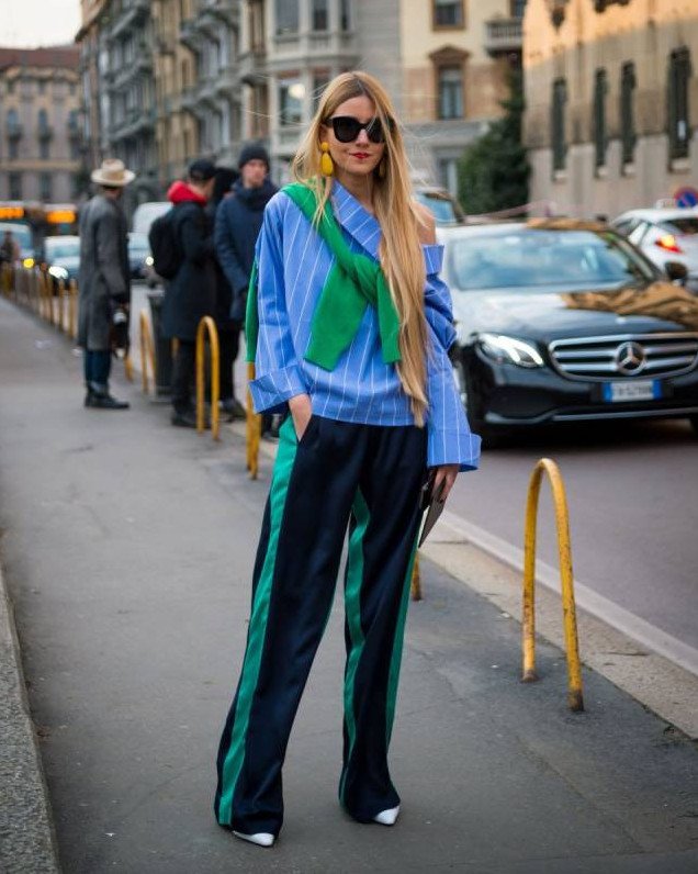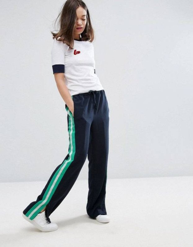 Стрит стайл штаны с лампасами.