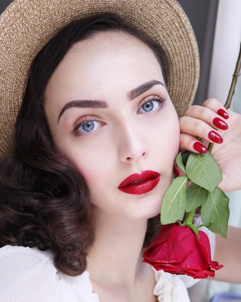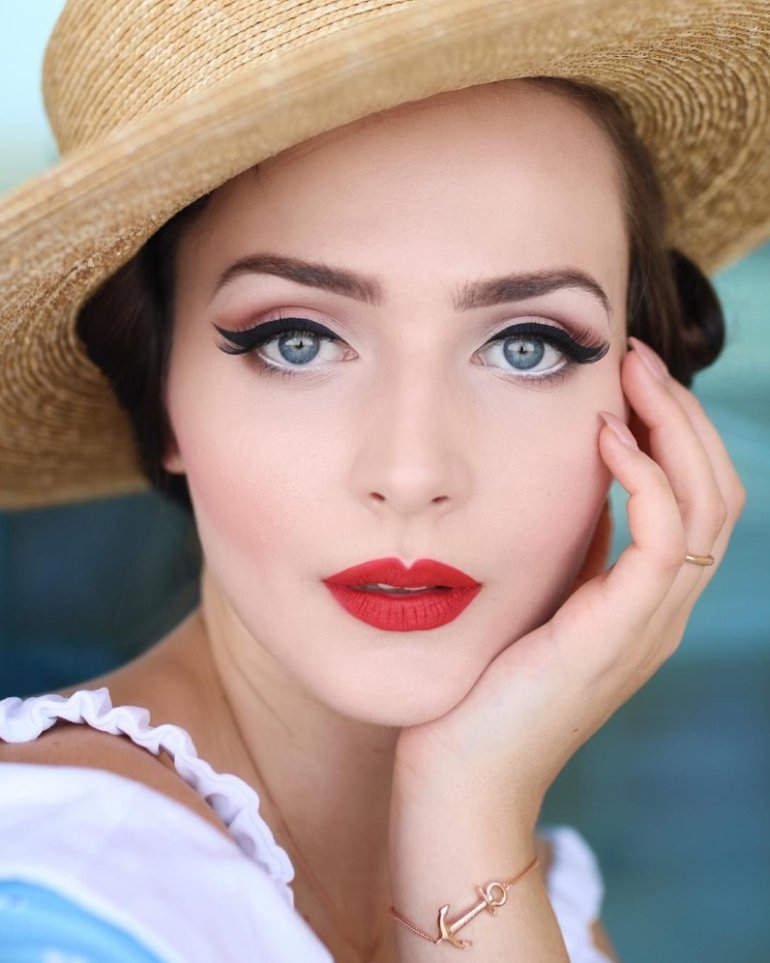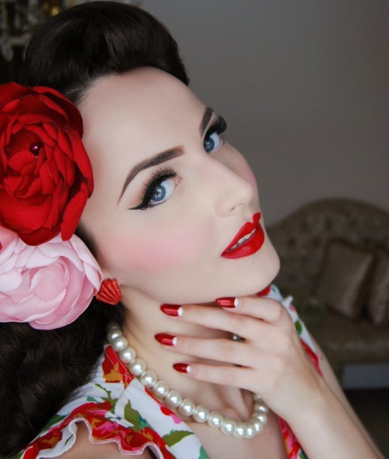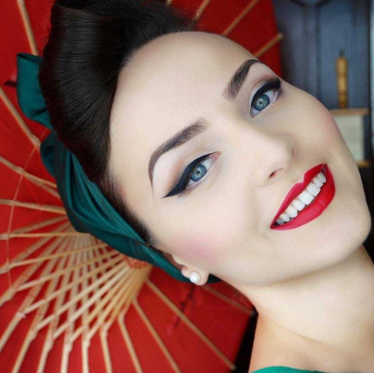 Пинап мейкап для круглого лица.