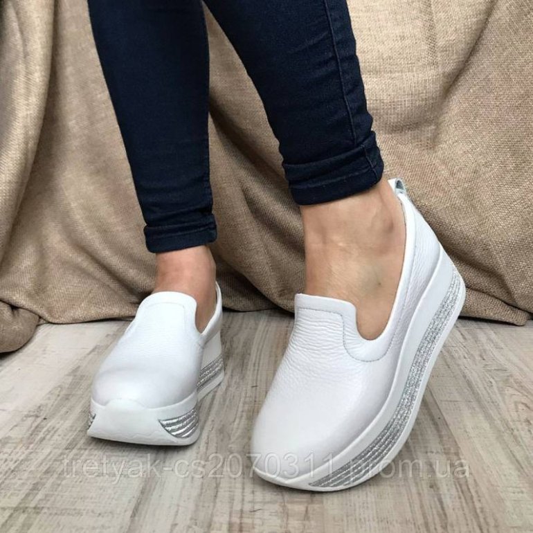 Слипоны Jack Jones дамские белоснежные кожаные.