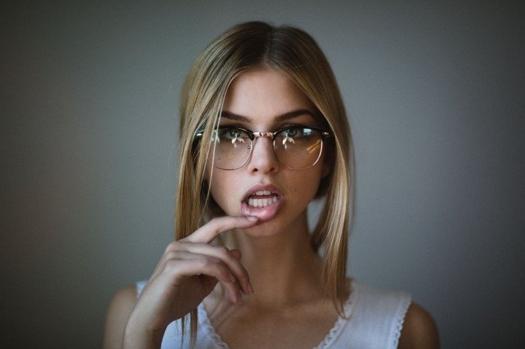Красивая эротика с брюнеткой в очках.